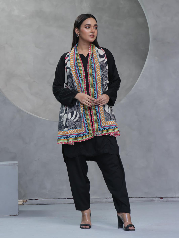 A very beautiful & Stylish Stole crafted from high quality materials. This fabric not only ensures durability, but making it an ideal choice for those seeking to enhance their wardrobe with a classic yet contemporary aesthetic & the contrasting colors enhances the fabric's versatility.
