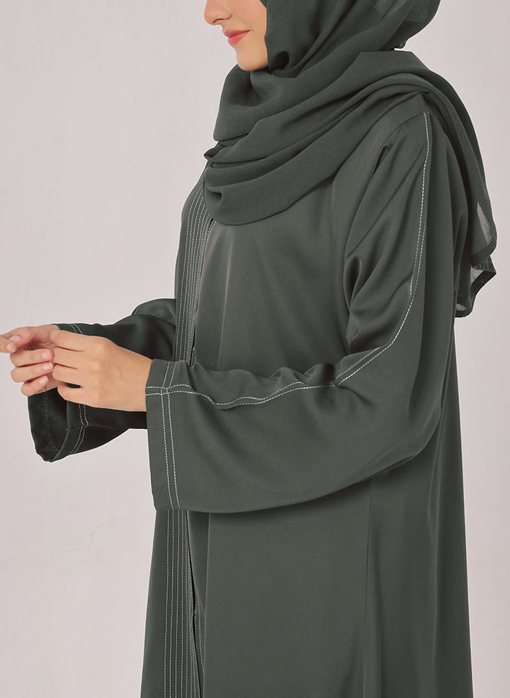 Hijab Ul Hareem Stone Grey Thread Work Nida Abaya - 0116-R-1006