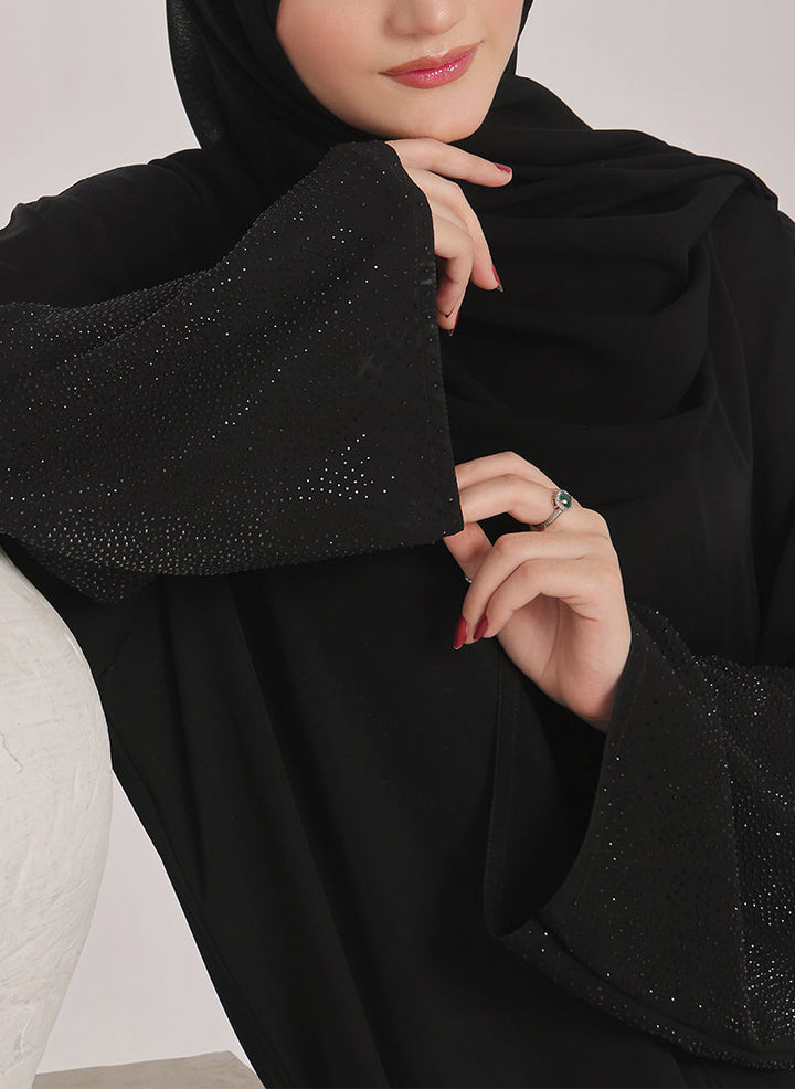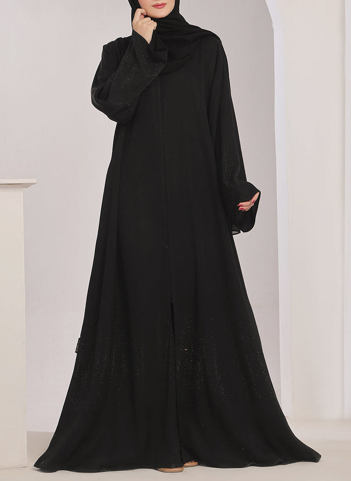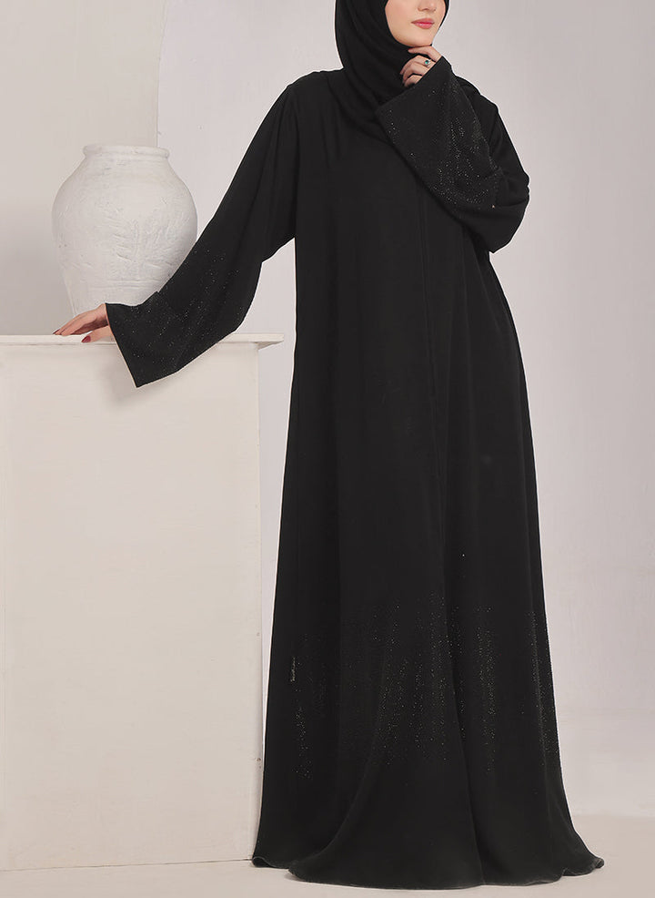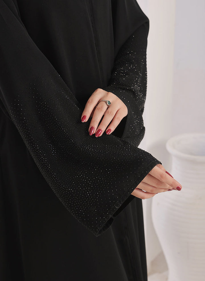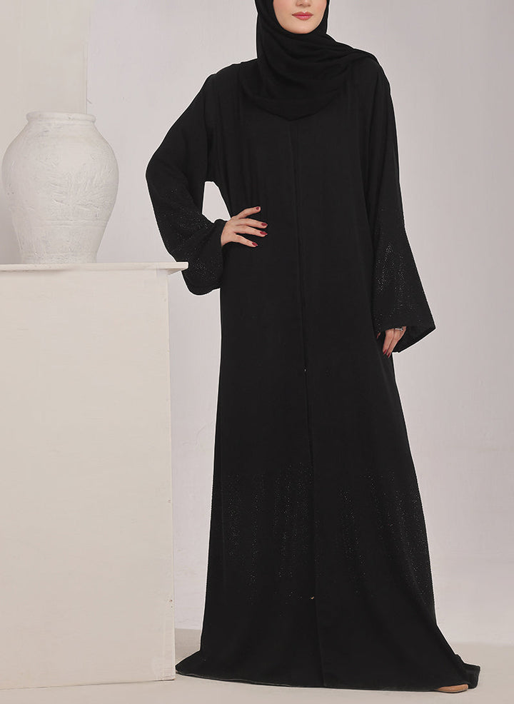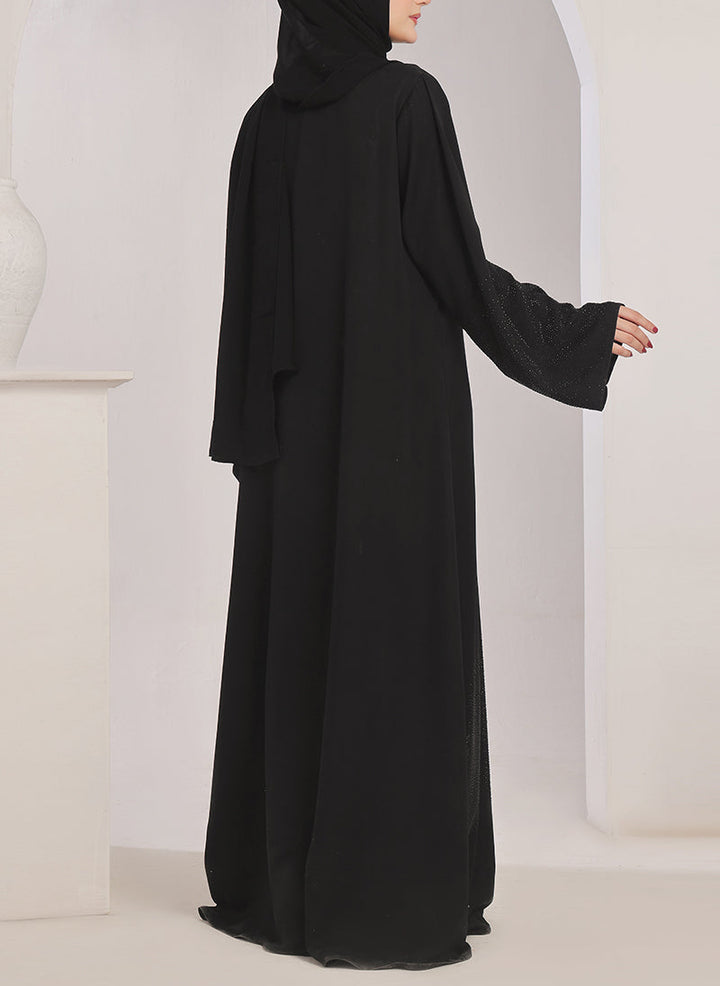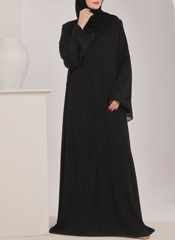 Hijab Ul Hareem Stone work Front Open Black Abaya - 0121-C-1024