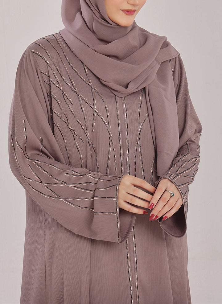 Hijab Ul Hareem Stone Work Zoom Light Lavender Abaya - 0116-C-1023