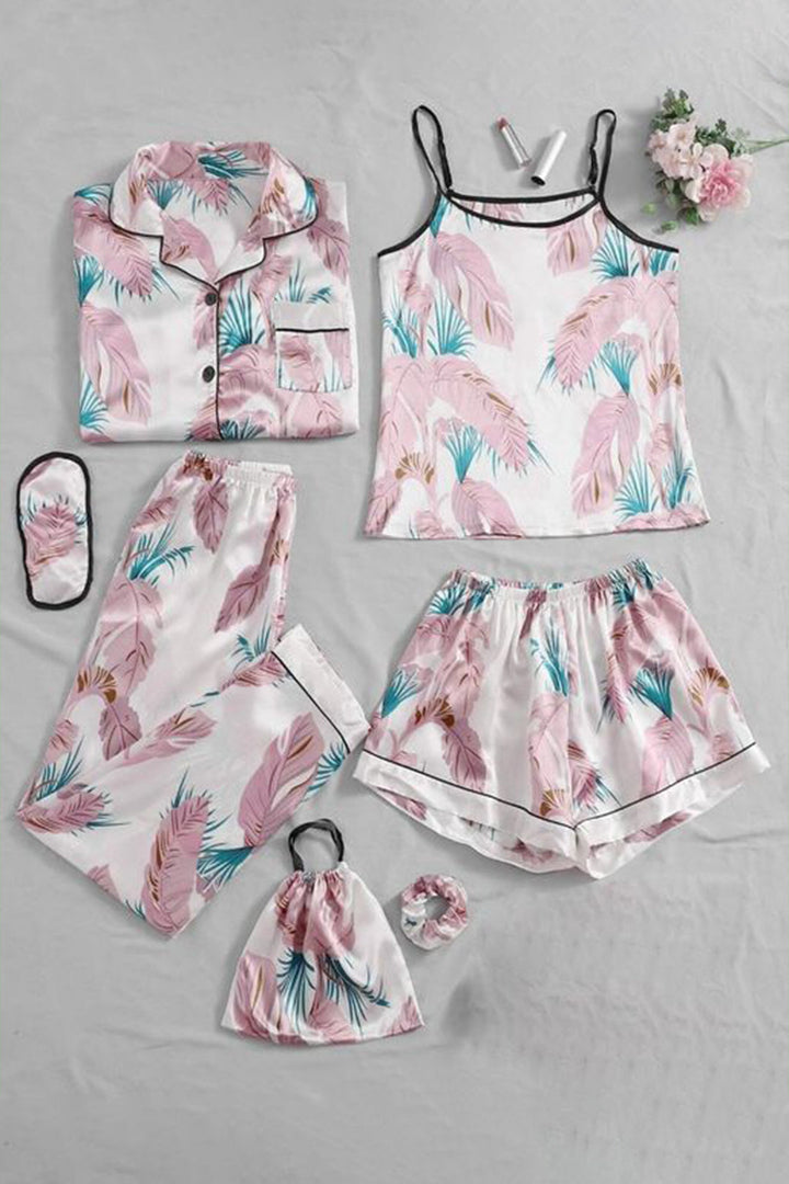 She's Inn Splendor Silky Satin Night Dress For Women and Girls 7 Piece Night Wear- Silky Satin Womens Pajama Sets Button Down Sleepwear Loungewear - Night Dress Nighty with Shirt and Trouser by Mid Night Vibes
