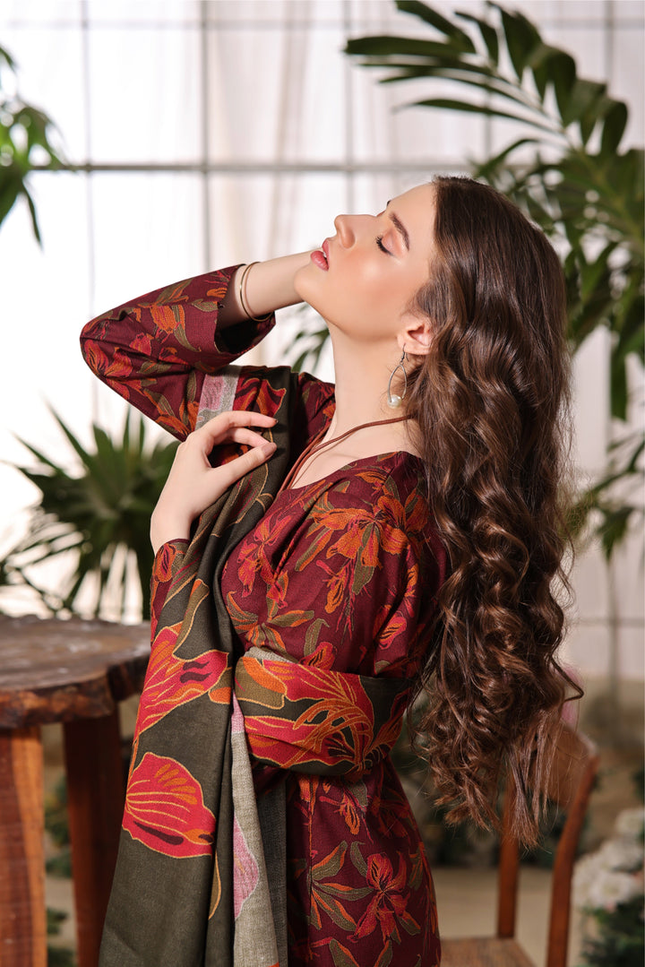 Experience an exquisitely (Unstitched) Digital Printed Dhanak shawl with a digitally printed Dhanak suit for a new go this winter season.The article includes:Digital Printed Dhanak Shawl: 2.5 yardsDigital Printed Dhanak Shirt & Trouser Fabric: 5.4 yardsDISCLAIMER: COLORS MIGHT APPEAR SLIGHTLY DIFFERENT DUE TO THE PHOTOGRAPHIC/LIGHTING EQUIPMENT USED. SOME ACCESSORIES/EMBELLISHMENTS USED ARE ONLY FOR SHOOT PURPOSES AND NOT PART OF THE ACTUAL SUIT.