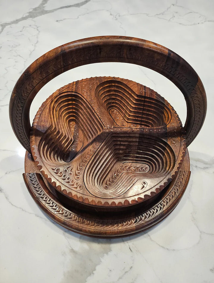 Three Section Wooden Handmade Dry Fruit Basket/Tray Collapsible Foldable Decorative Ideal For Nuts Or Any Snack