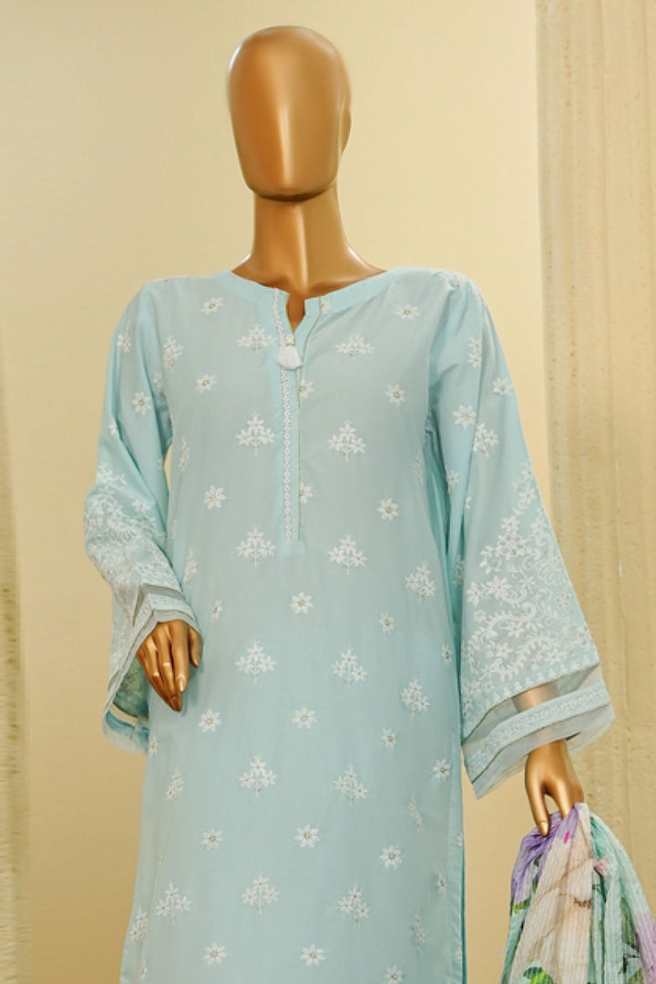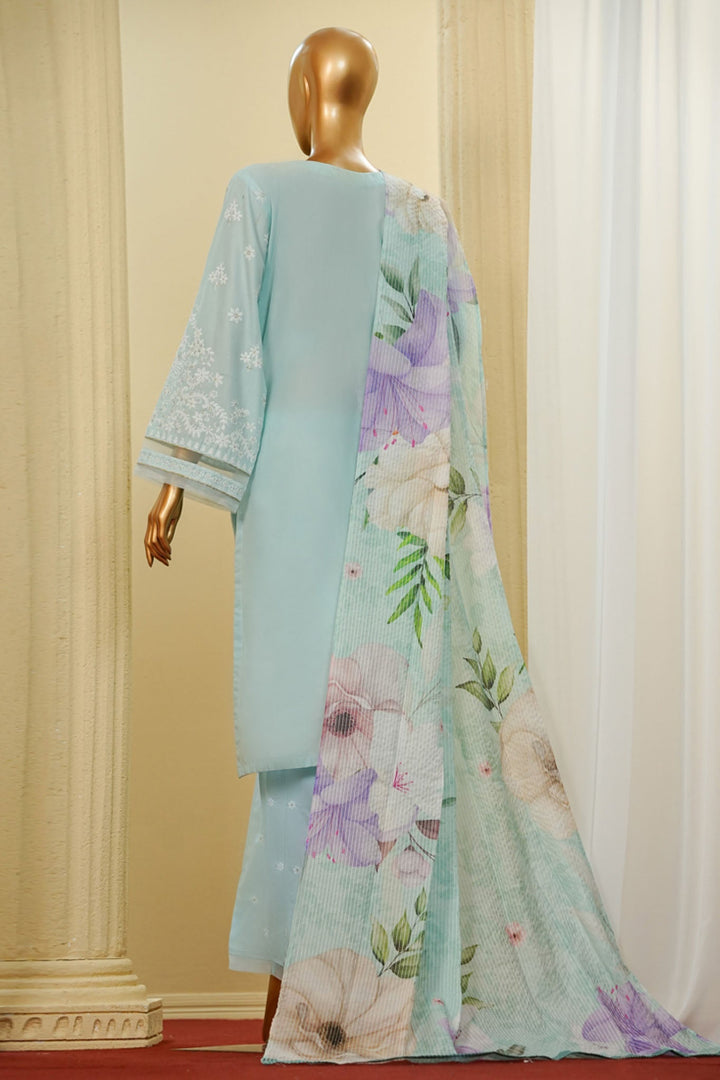 Traditional Vibes By HZ Stitched 3 Piece Solid Emb Chikankari Collection'2025-PWC-103-Sky Blue