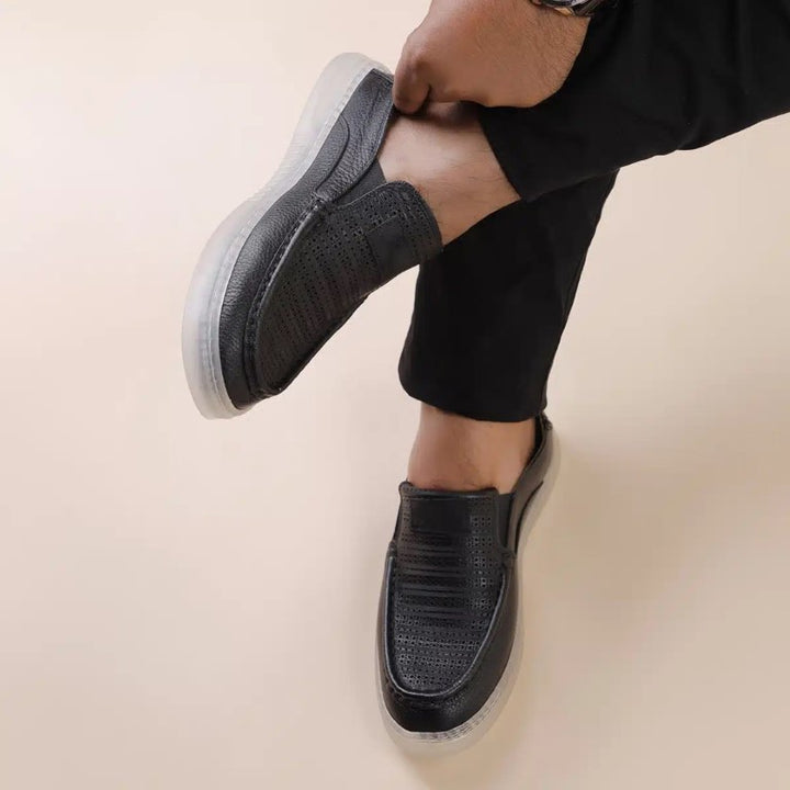 Turkish-Designer Dotted Leather Shoes with Transparent Sole in Black Color