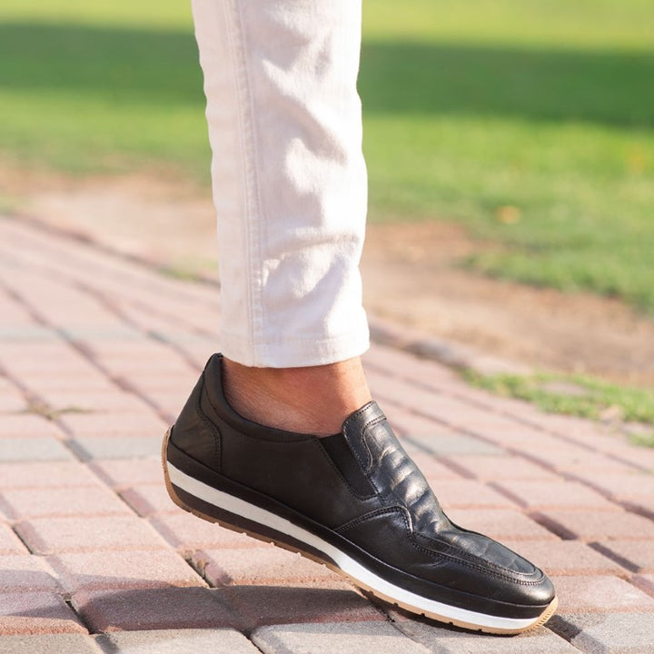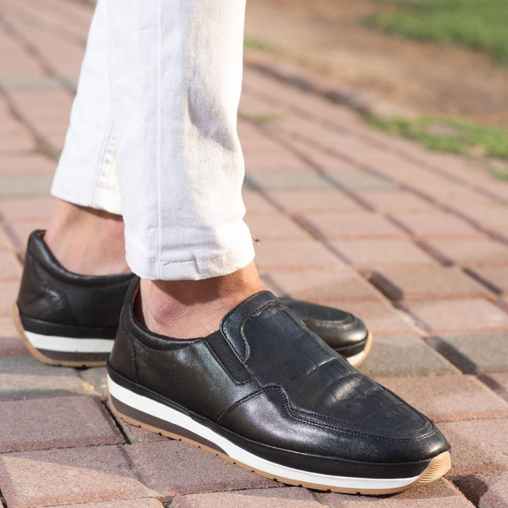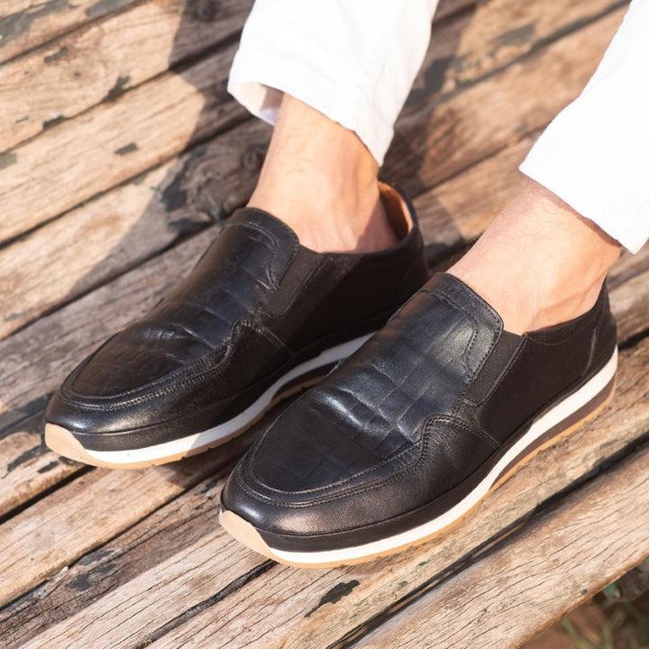Turkish-Made Crocodile Style Leather Shoes in Somber Black