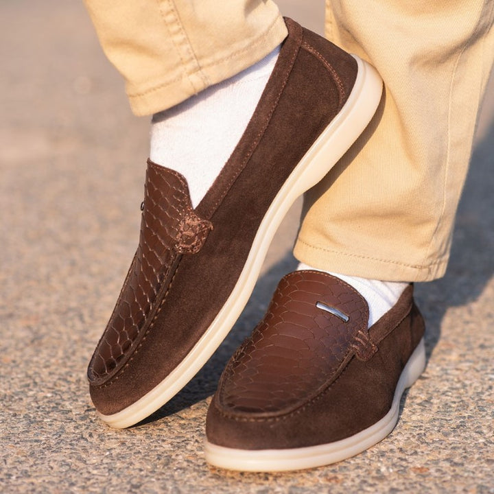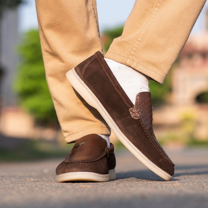 Turkish-Made Crocodile Style Suede Leather Shoes in Dark Brown