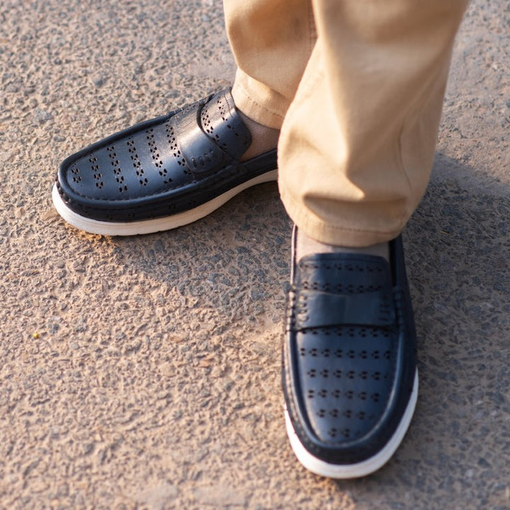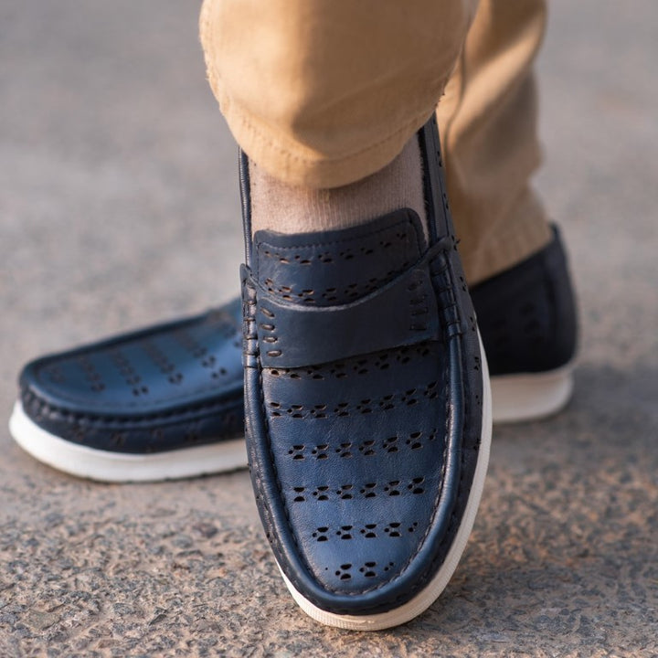 Turkiye-Origin Tri-Dotted Leather Shoes in Blue