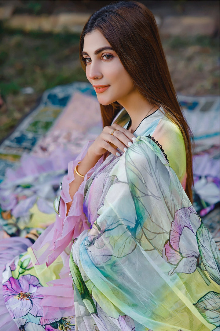 Experience Exquisitely (Unstitched) Digital Printed 3pc Lawn Dress With Digital Printed Chiffon Dupatta & Digital Printed Trouser.This suit is for a new goes this summer season. The article includes:Digital Printed Shirt 3 yardsDigital Printed Chiffon dupatta 2.5 yardsDigital Printed Trouser 2.5 yards DISCLAIMER: COLORS MIGHT APPEAR SLIGHTLY DIFFERENT DUE TO THE PHOTOGRAPHIC/LIGHTING EQUIPMENT USED. SOME ACCESSORIES/EMBELLISHMENTS USED ARE ONLY FOR SHOOT PURPOSES AND NOT PART OF THE ACTUAL SUIT.