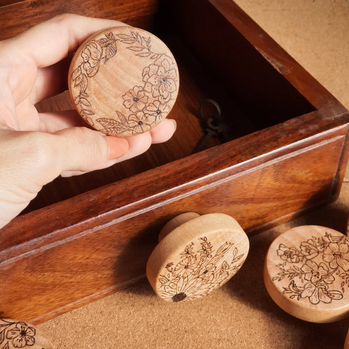 4 Pcs These wood burned knobs are perfect for upgrading furniture like drawers, cabinets, or doors, bringing a vintage-inspired or nature-themed charm to any space.