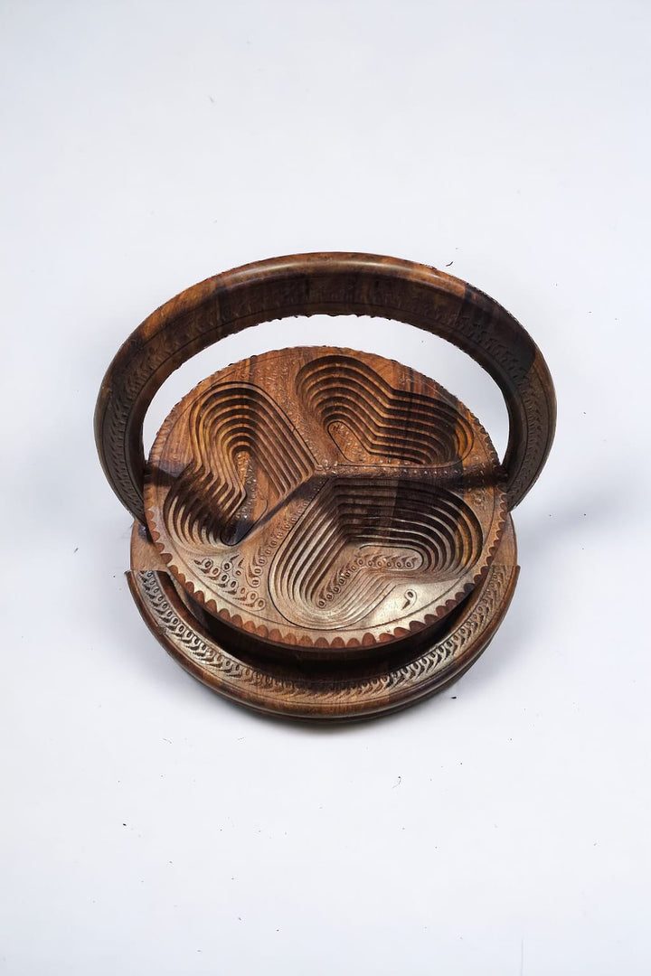 Wooden Dry Fruit Basket Hand Carved 4 portion