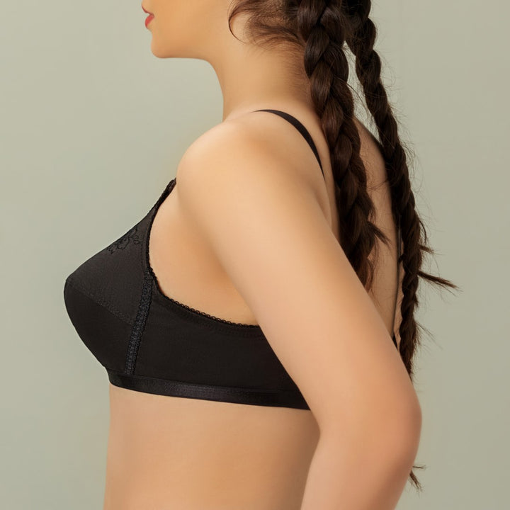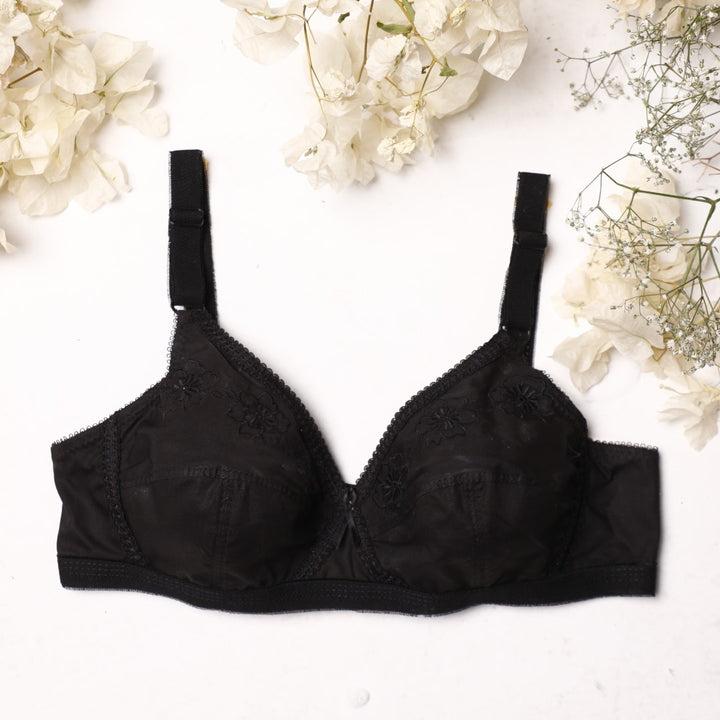 XCLence, Cotton embroidered Unpadded Crossover Bra, BLACK
