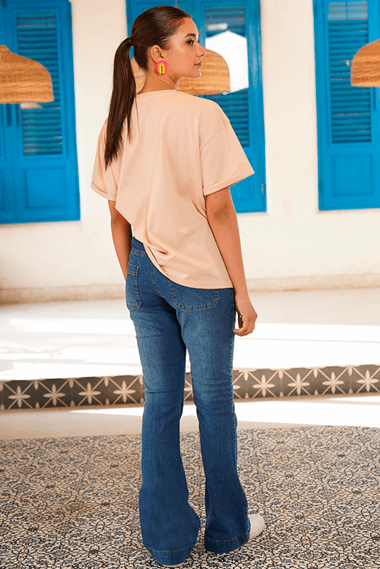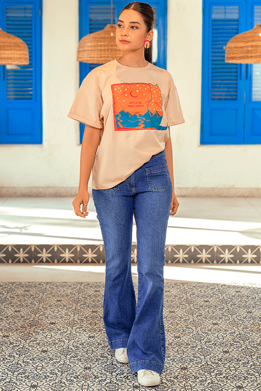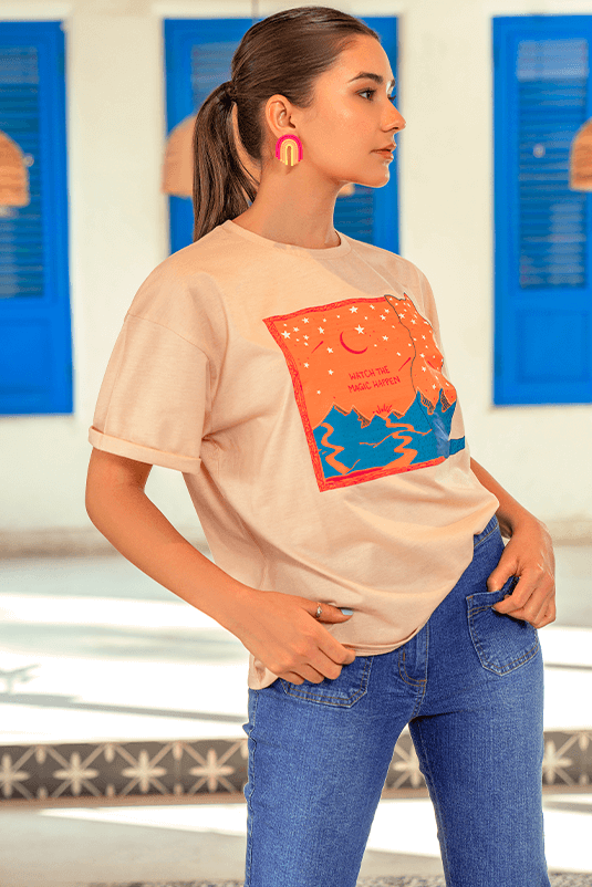 Z Street By Zaaviay Stitched Boxy Fit Graphic Tee (Nude)
