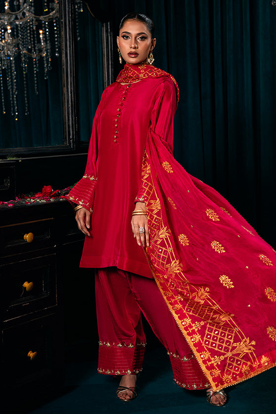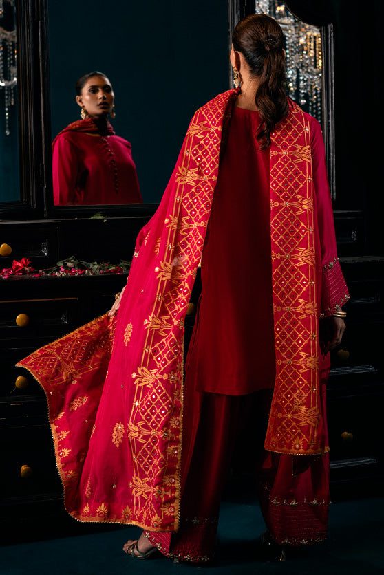 Lux Edit By Zaaviay Stitched Fuschia Charm (Three Piece)