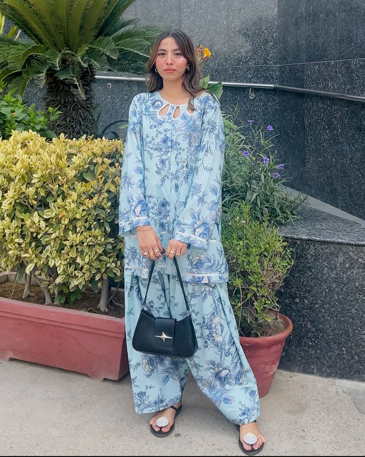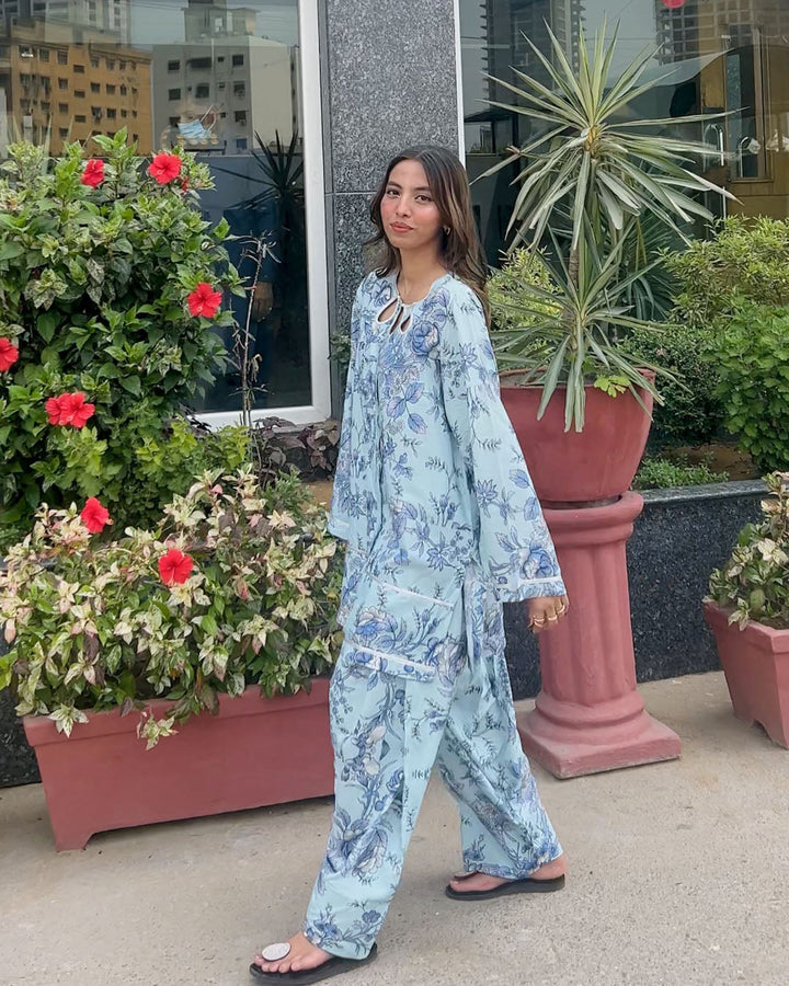 Urban Cut Stitched 2 Piece Cotton Printed Co- Ord Set with Farshi Salwar