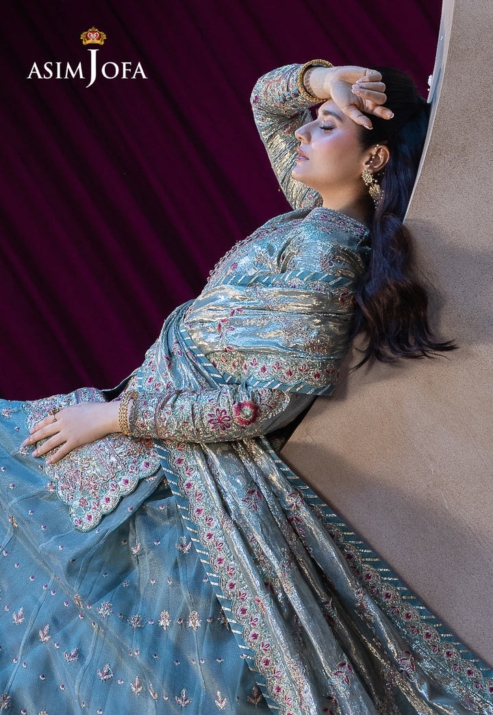 Made for grand celebrations, this radiant aquamarine ensemble is a dazzling expression of opulence. The shirt, crafted on luminous shimmer fabric, is adorned with intricate embroidery in light gold zari and sequins, enriched by maroon and rust threadwork that adds depth and warmth to the design. Exuding a rich, luxurious vibe, it is paired with a voluminous lehenga finished with an elegant border that anchors the look with poise. Completing the ensemble is a stunning shimmery dupatta, embroidered with artistic finesse—a look that captures the essence of festive opulence.