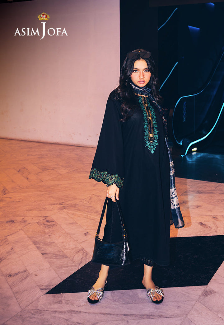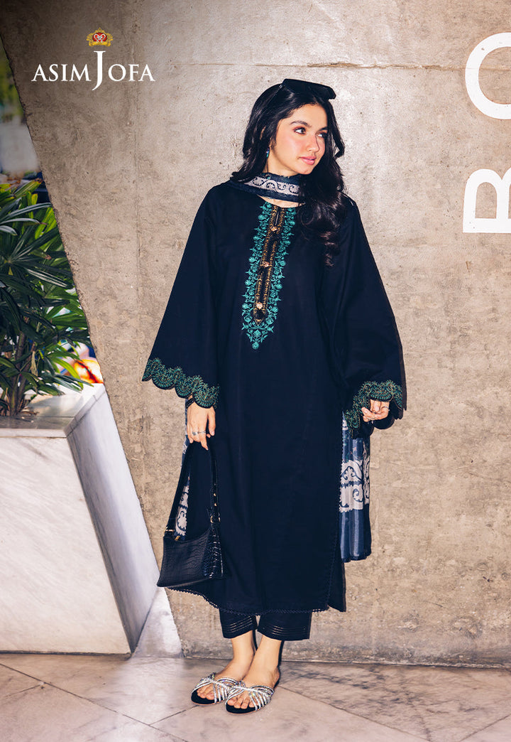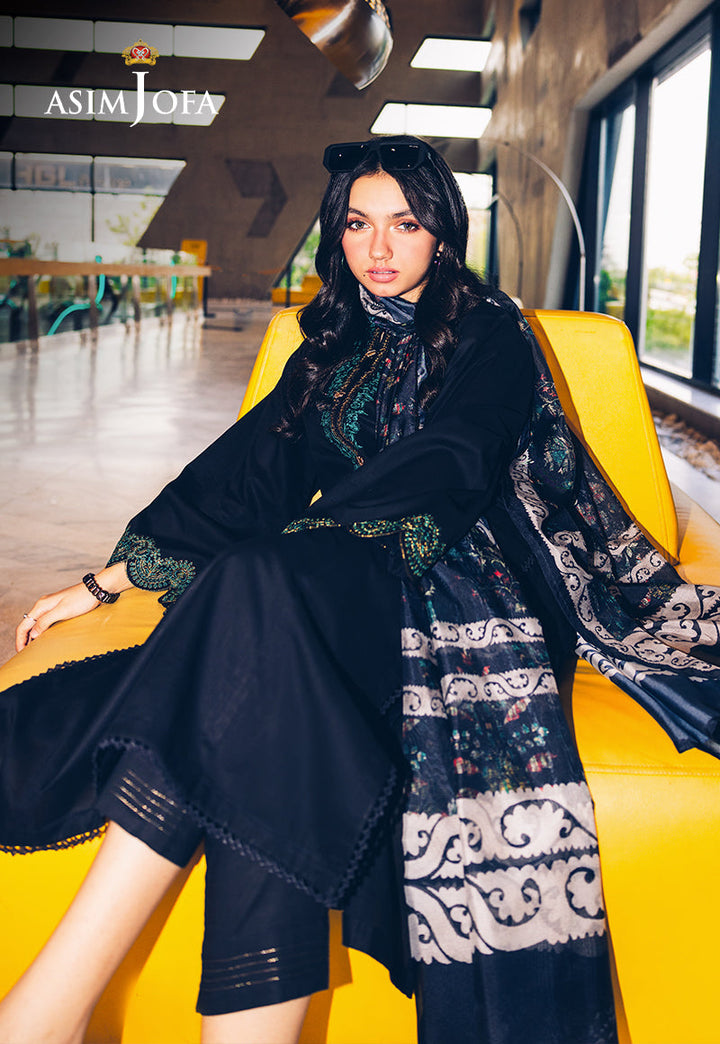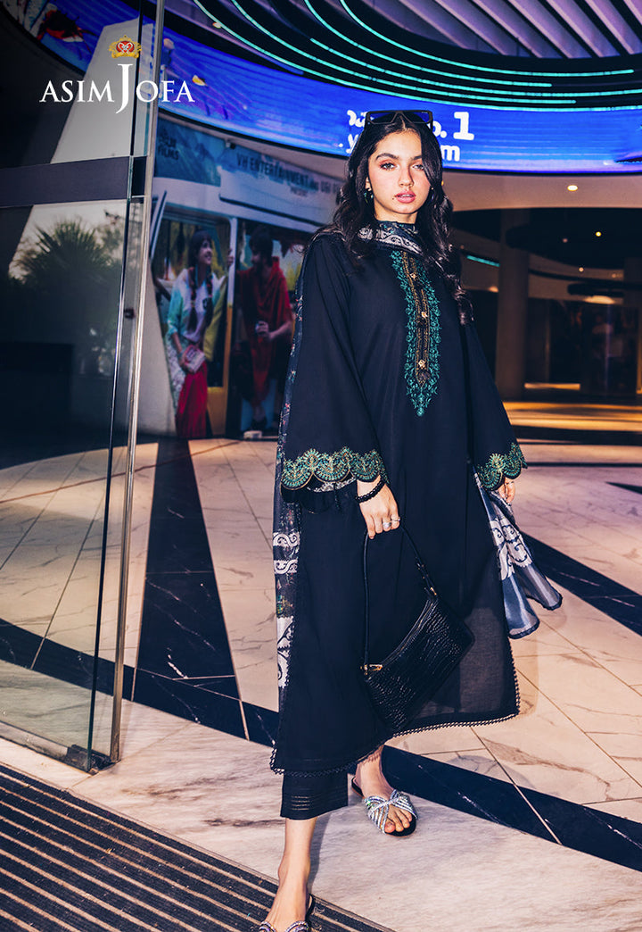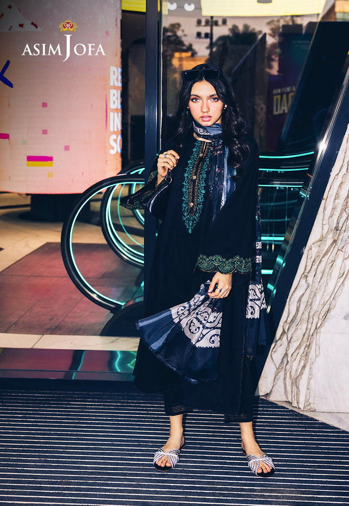 The allure of the night is woven into the very fabric of this cambric outfit from Asim Jofa’s “Essential Pret” Collection. The cationic chiffon dupatta flows like a gentle breeze against the backdrop of an endless evening. Aina Asif wears this set as design that exudes confidence and grace with every step.