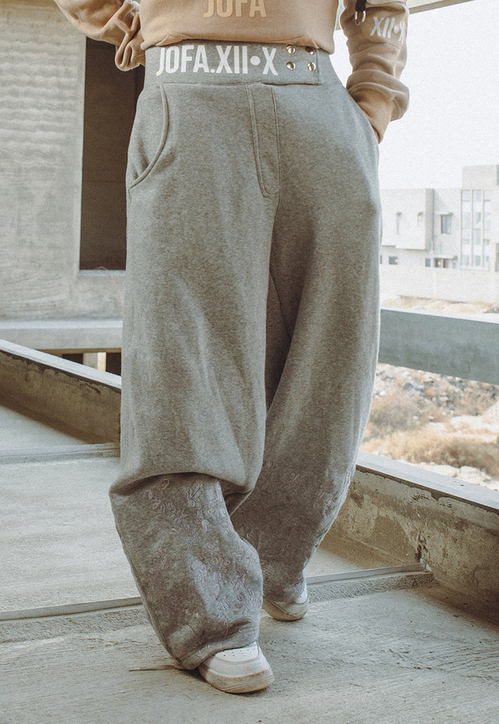 Effortlessly redefine street-style luxury with these wide-leg sweatpants, crafted from high-quality cotton fleece for ultimate comfort. The JOFA and XIIX screen-printed waistband creates a bold statement, while meticulous embroidery on both legs elevates the design with a touch of sophistication. A perfect blend of style and versatility, these pants are a wardrobe essential for those who set trends with ease and confidence.