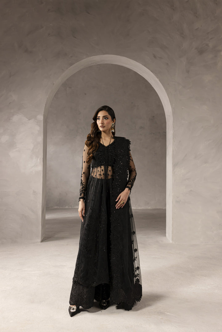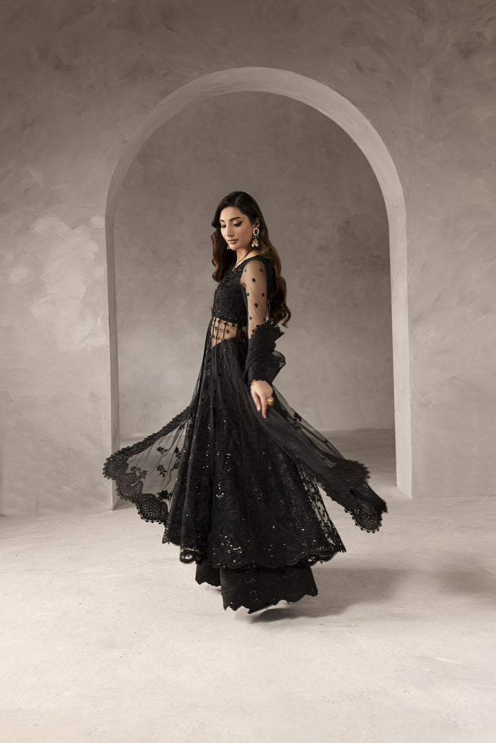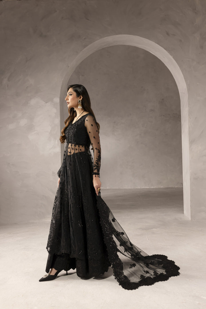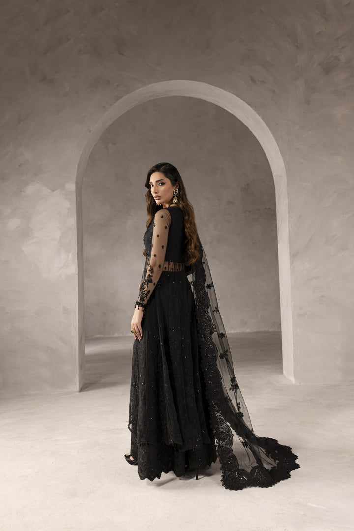 Step into the world of timeless sophistication with Amour de Noire, a luxurious black maxi dress that redefines Eastern glamour. This masterpiece is adorned with meticulous hand embellishments, combining traditional artistry with contemporary allure.