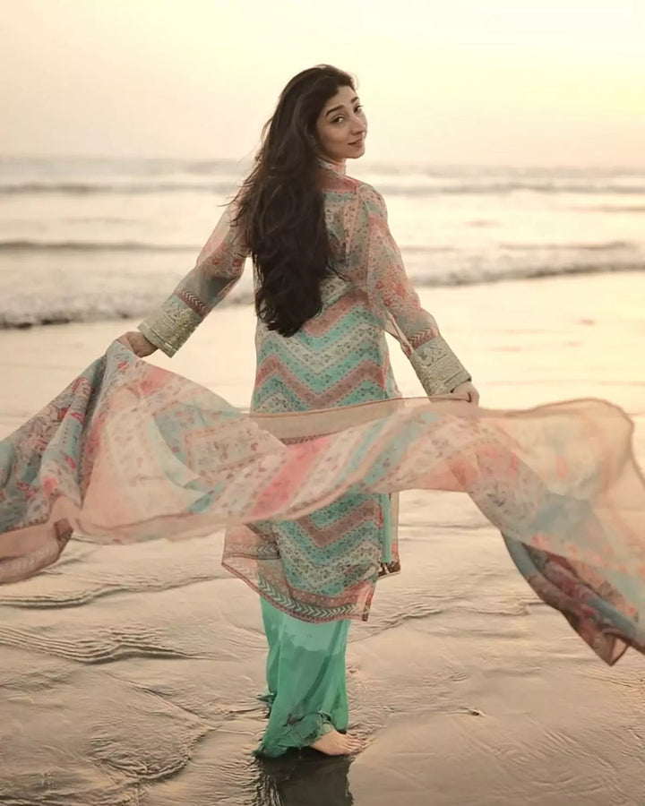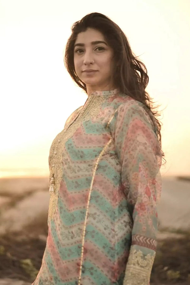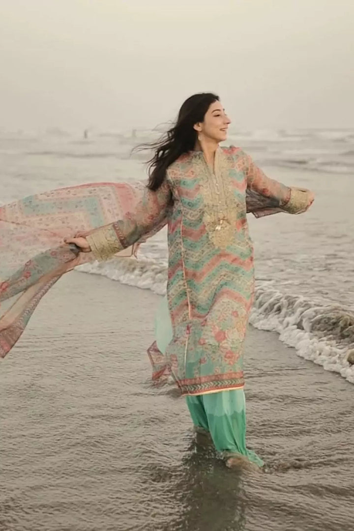 Ayla Studio Stitched Embroidered chiffon 3PC - Aquamarine