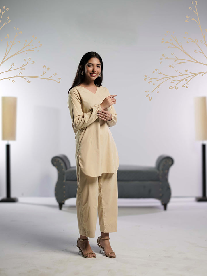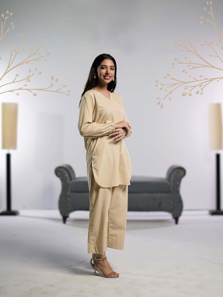 Ahlam Stitched - 2 piece Shirt & Trouser Beige Bliss Collection'2024