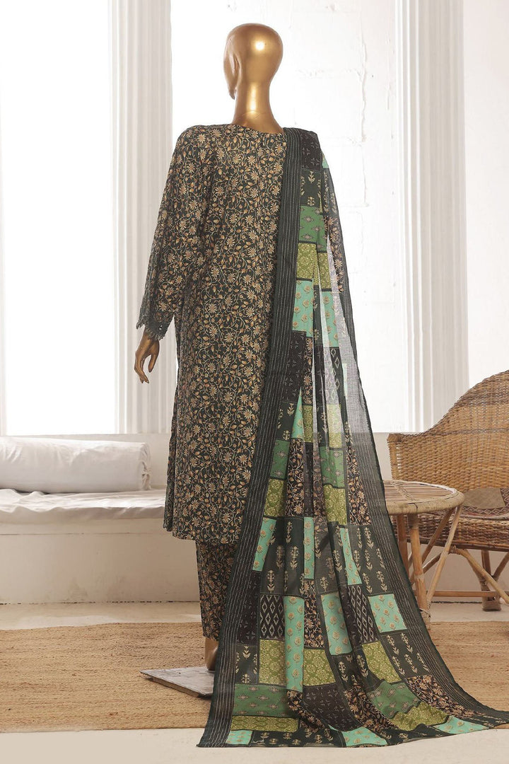 Bin Saeed Stitched 3 Piece Emb Lawn Frock Vol-03 Collection-SM-1634-Green