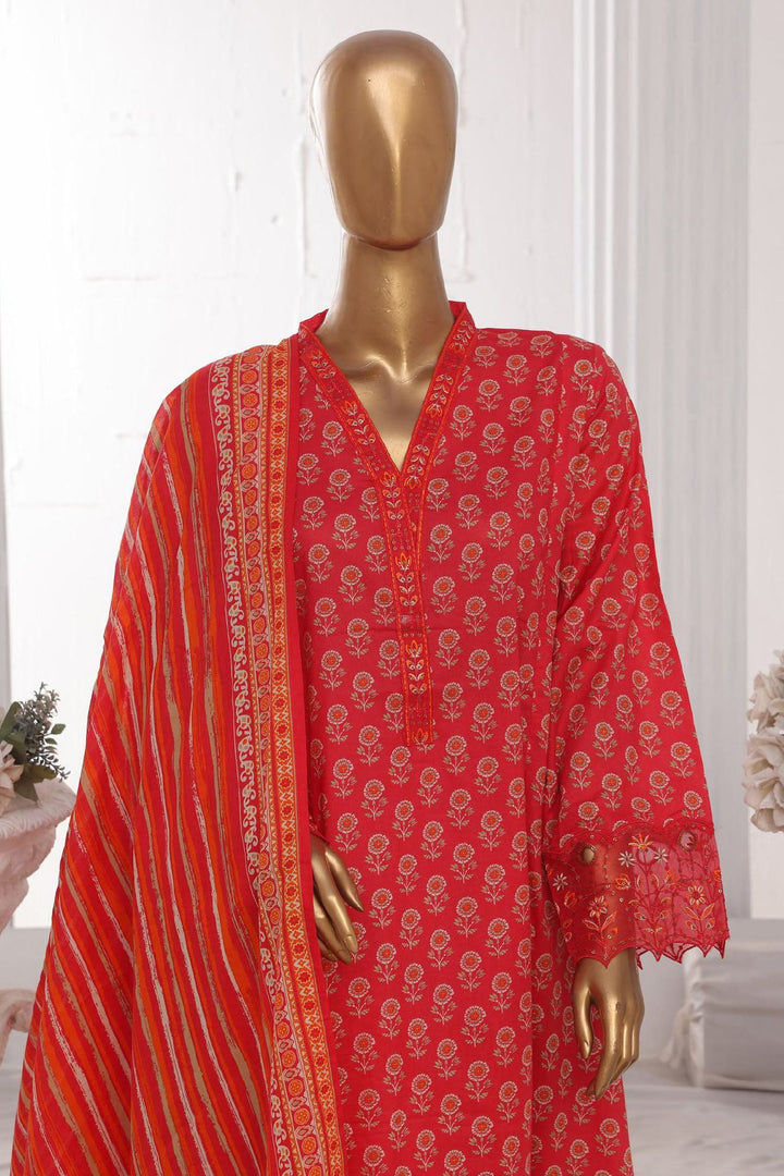 Bin Saeed Stitched 3 Piece Emb Lawn Frock Vol-03 Collection-SM-1637-Red