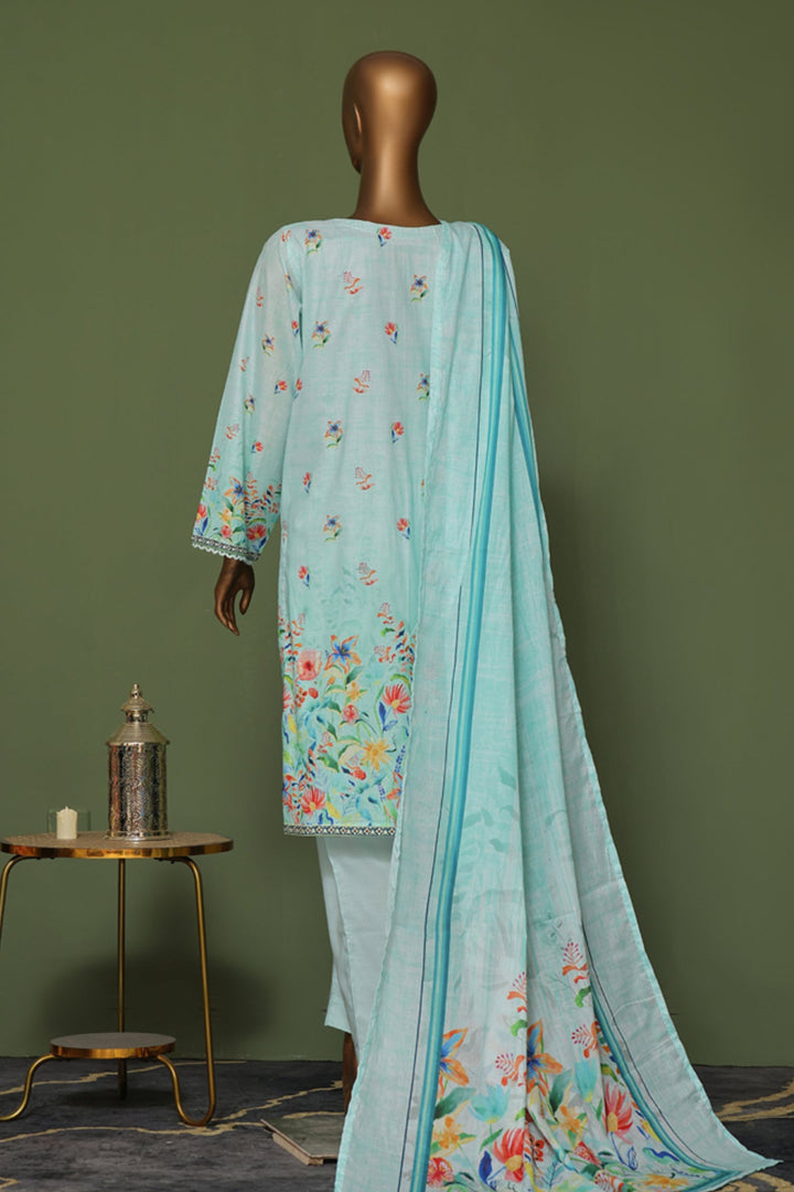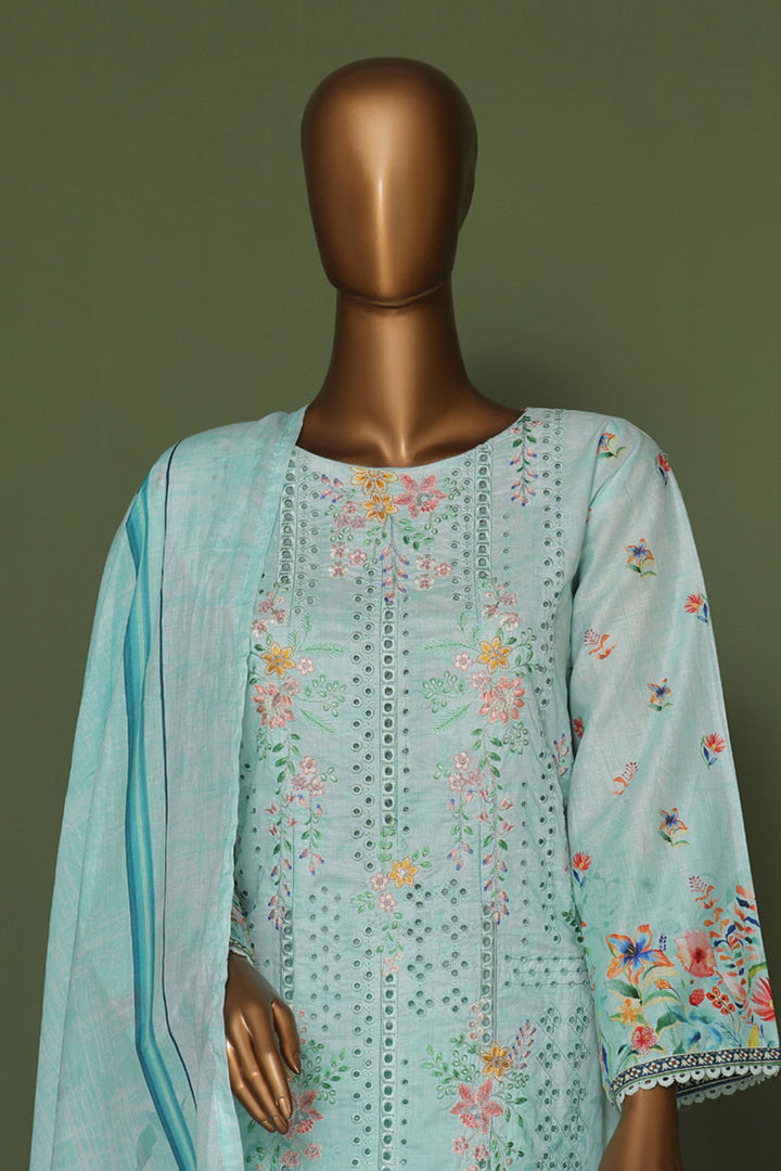 Bin Saeed Stitched 3 Piece Exclusive Emb Cotton Vol-02 Collection'2024-WC-1256-Ferozi