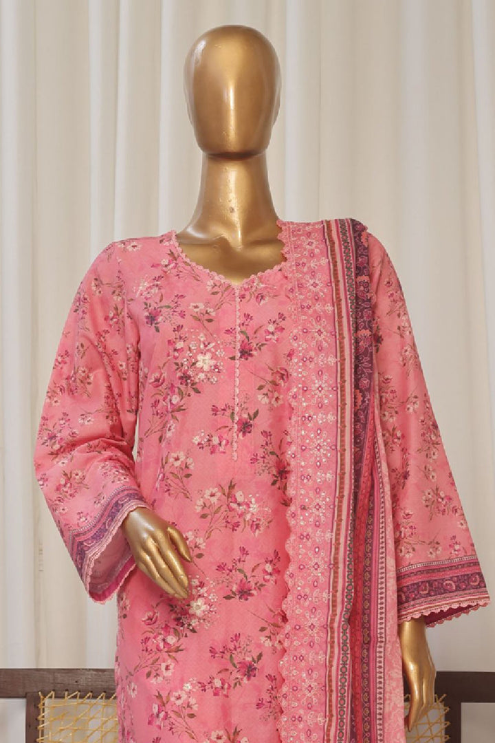 Bin Saeed Stitched 3 Piece Exclusive Emb Lawn Collection'2025-SM-1815-Pink