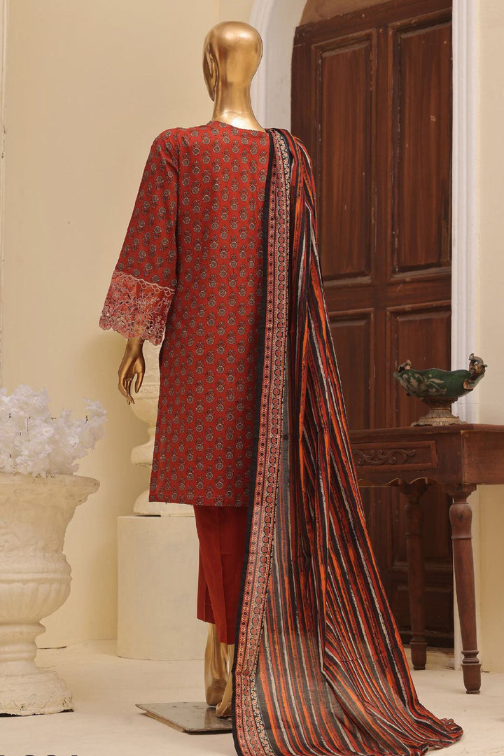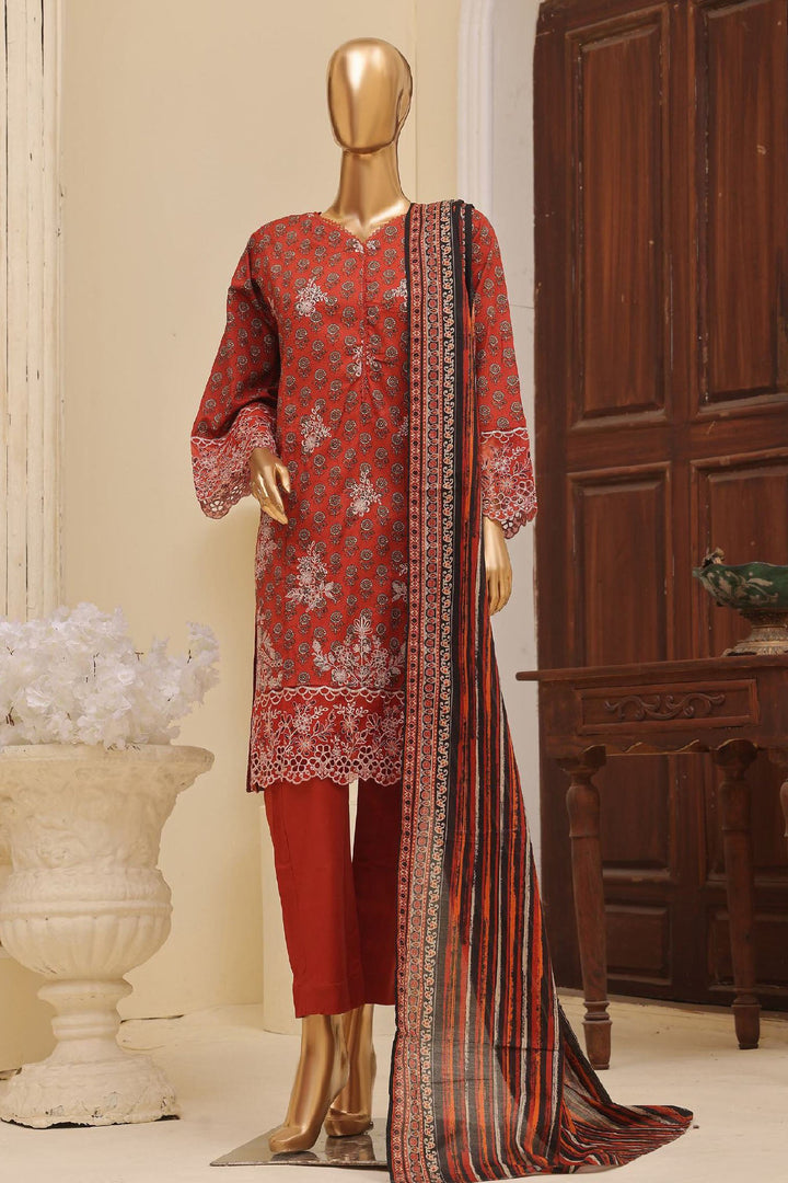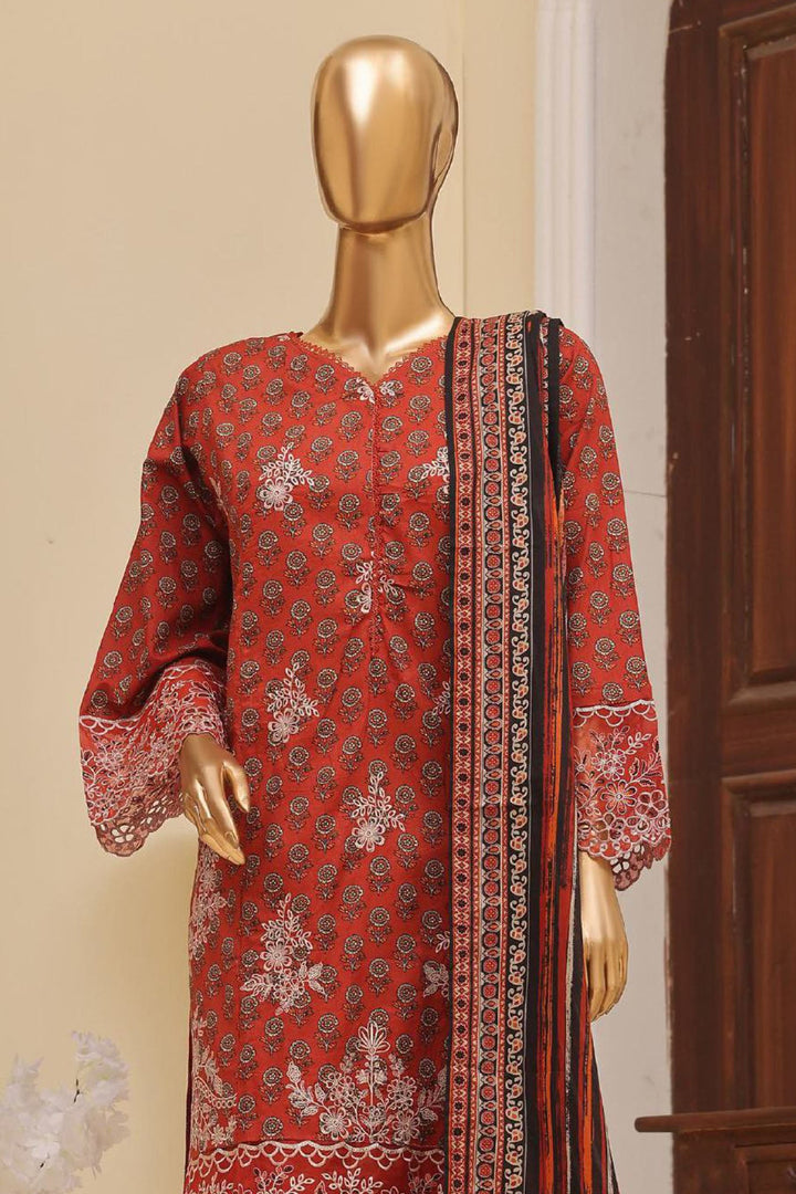 Bin Saeed Stitched 3 Piece Exclusive Emb Lawn Vol-03 Collection-SM-1687-Brown