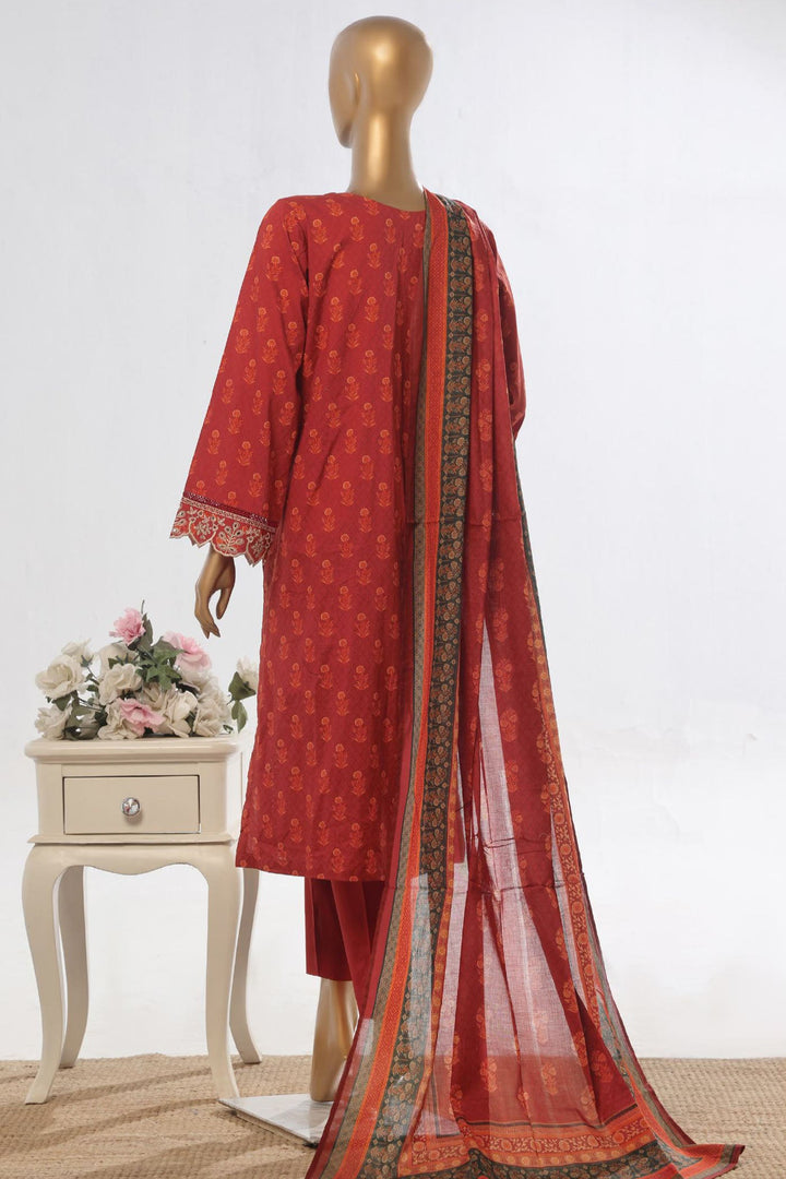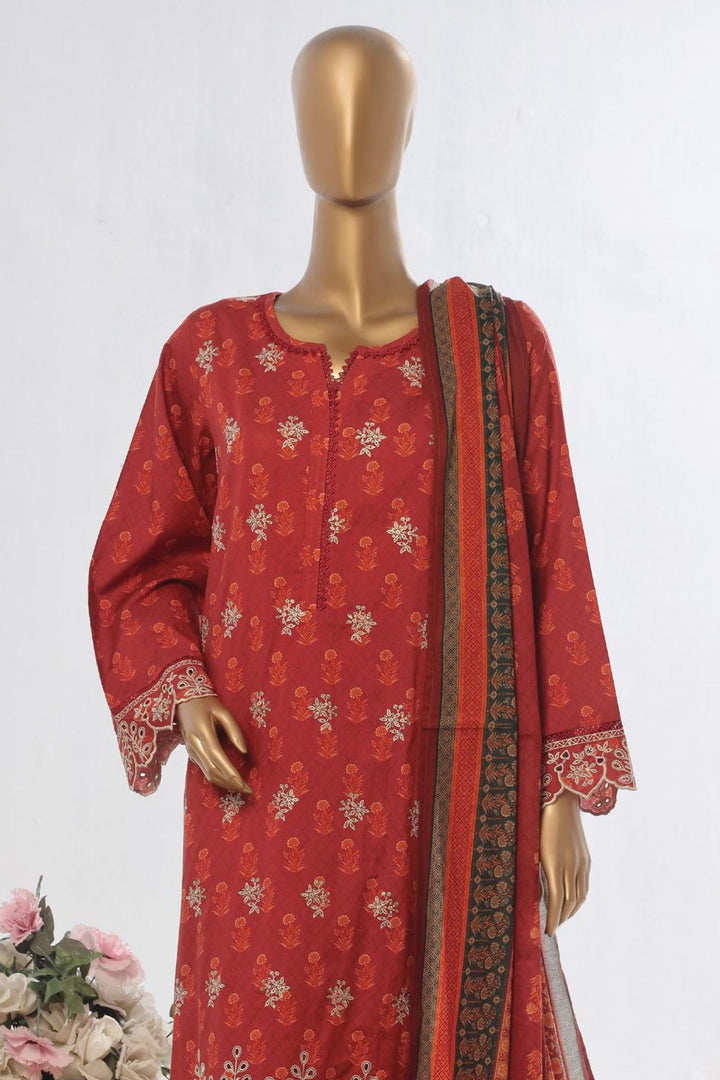 Bin Saeed Stitched 3 Piece Exclusive Emb Lawn Vol-03 Collection-WC-1702-Red