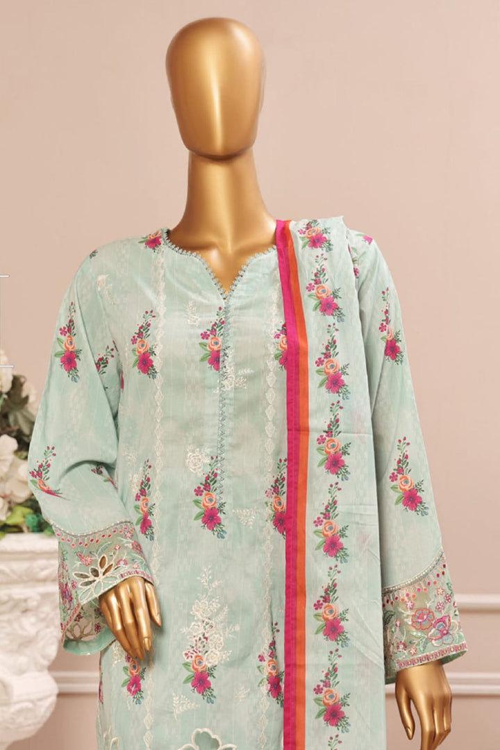Bin Saeed Stitched 3 Piece Exclusive Emb Lawn Vol-05 Collection-SM-1946-Mint