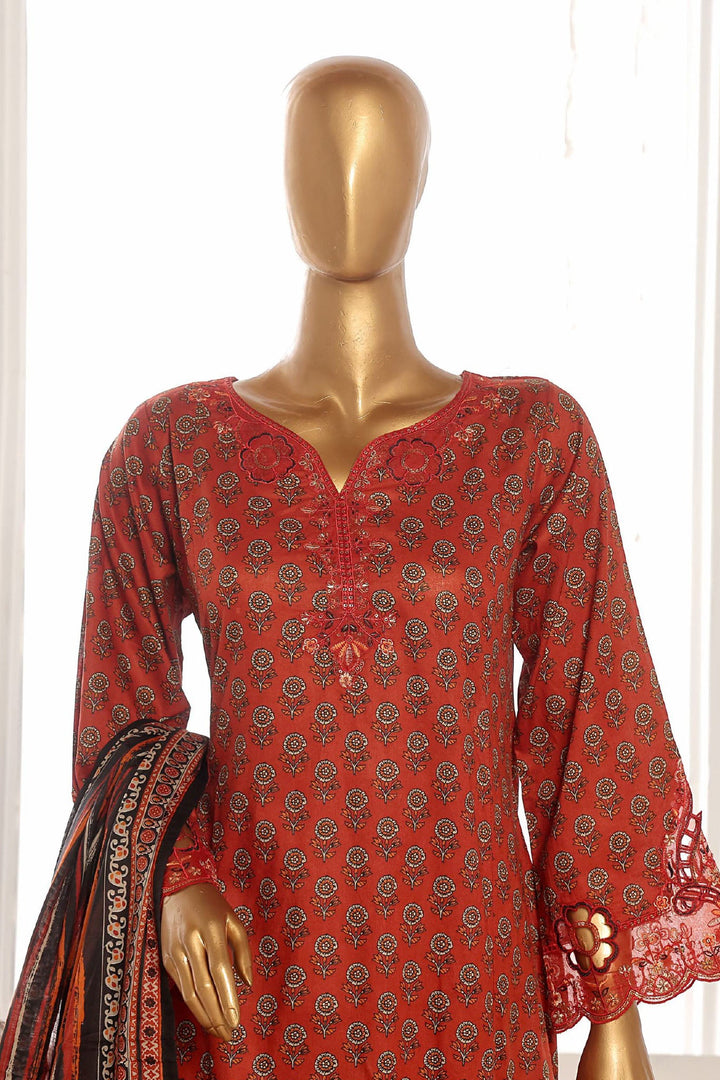 Bin Saeed Stitched 3 Piece Exclusive Lawn Frock Vol-01 Collection-SM-1464-Rust