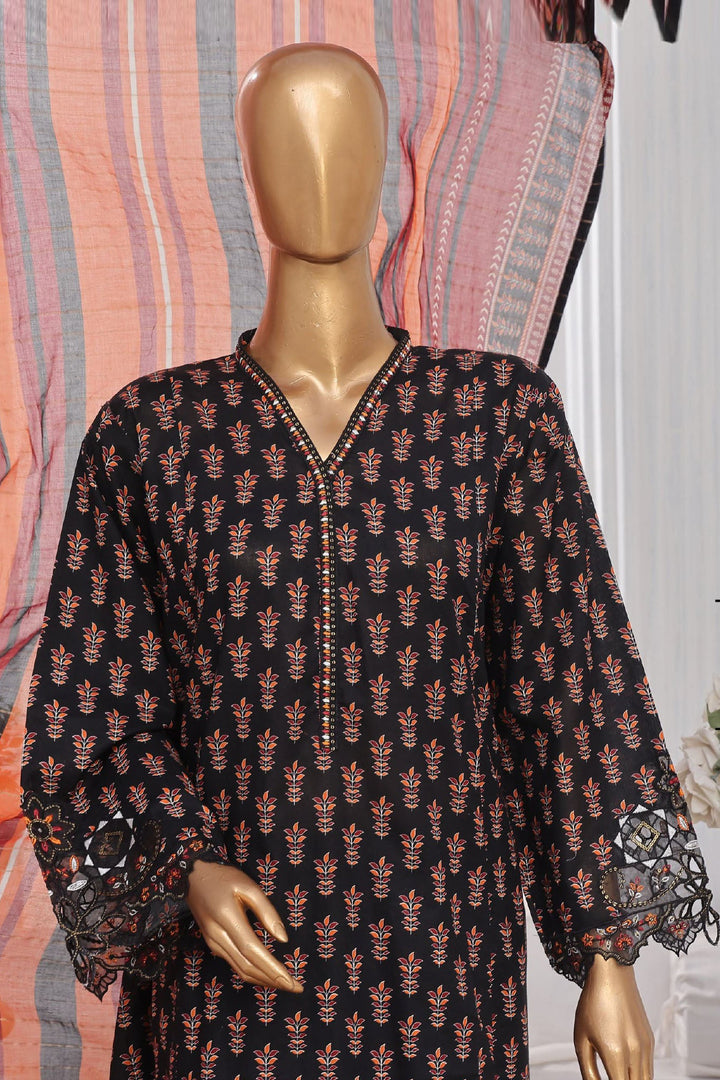 Bin Saeed Stitched 3 Piece Exclusive Lawn Frock Vol-01 Collection-SM-1475-Black