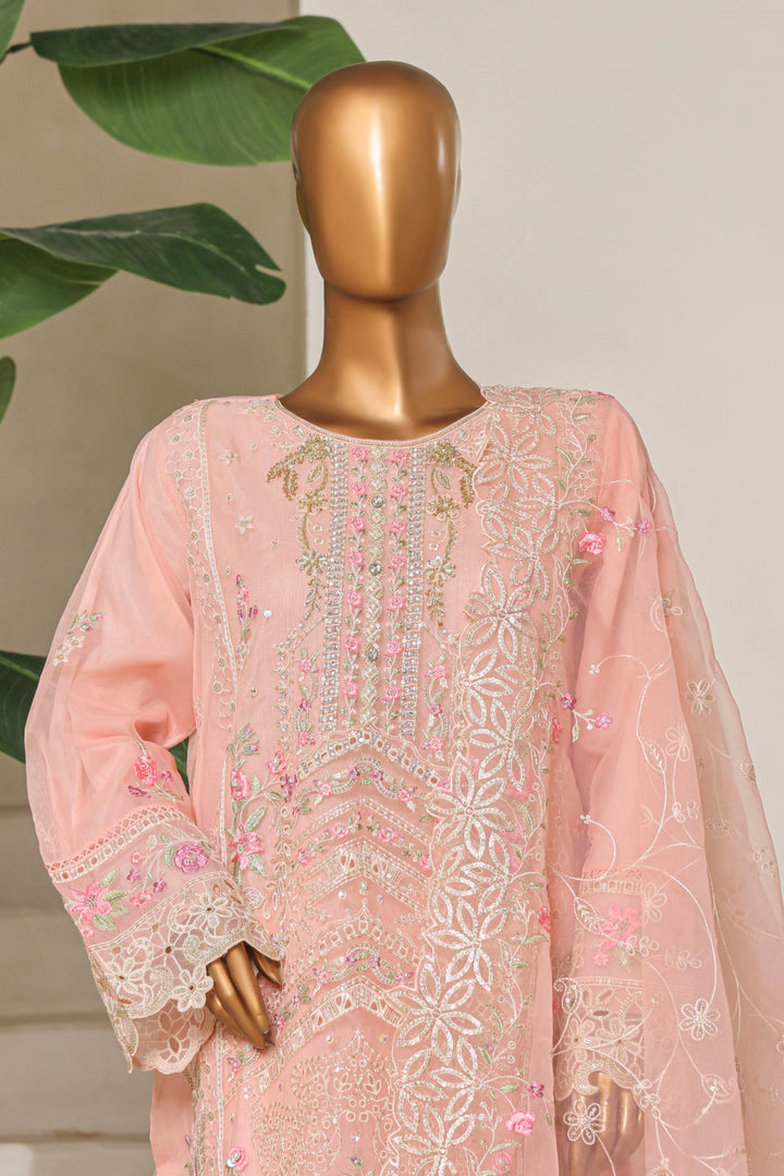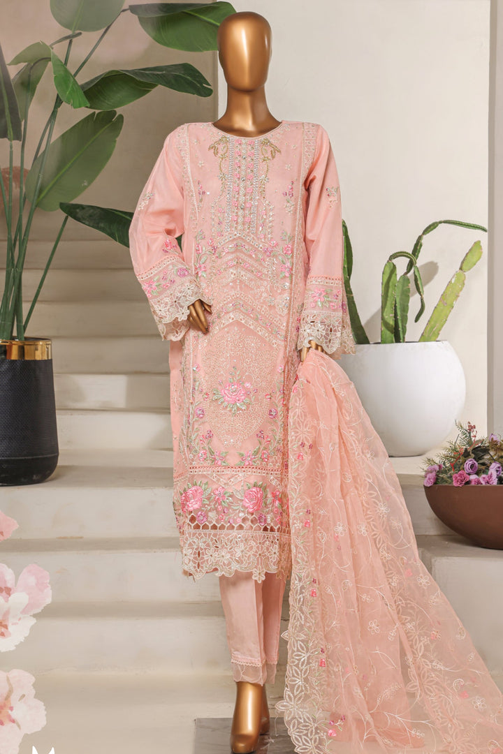 Bin Saeed Stitched 3 Piece Luxury Emb Chiffon & Organza Collection'2025-STSC-2194-Pink