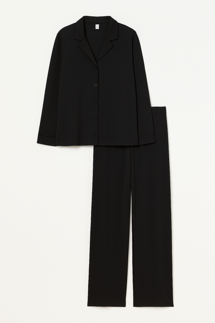 Experience ultimate comfort and luxury with our Black Decent Pjs. Made from 95% bamboo fiber, this pyjama set is breathable and moisture-wicking, providing all-night comfort. The elasticated waist, satin trim, and faux shell buttons add a touch of elegance. Sleep soundly in style.