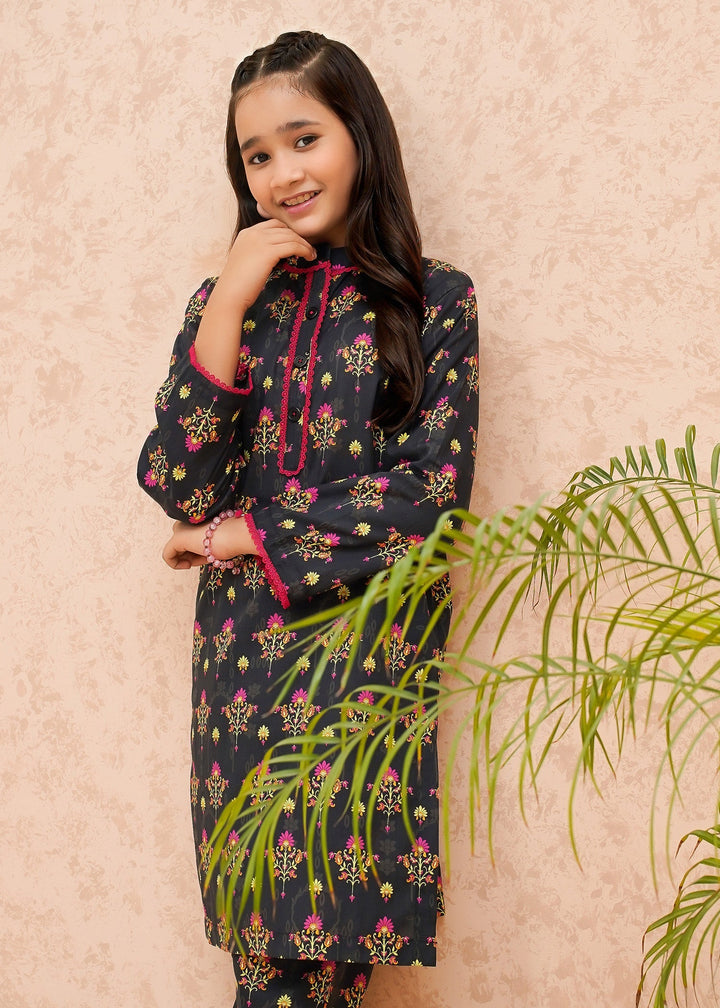 This elegant Black Rose lawn 2-piece suit is perfect for girls aged 1 to 18 years who want to shine at any party or special occasion. Crafted from soft, breathable lawn fabric, it ensures comfort throughout the day while maintaining a stylish look. The classic black color adds a touch of sophistication, making it easy to pair with accessories for a complete, graceful outfit. Designed with attention to detail, this suit blends tradition with modern charm, making it a lovely choice for your young one? wardrobe.