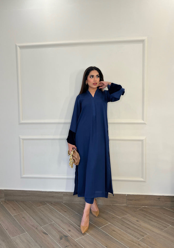 Introducing our Crepe Fabric Long Flowy Shirt with Velvet Patch Sleeves a masterpiece in the world of modern elegance. This shirt, meticulously crafted for comfort and style, seamlessly combines the luxurious touch of crepe with the opulence of velvet, setting a new standard for sophistication in your wardrobe.