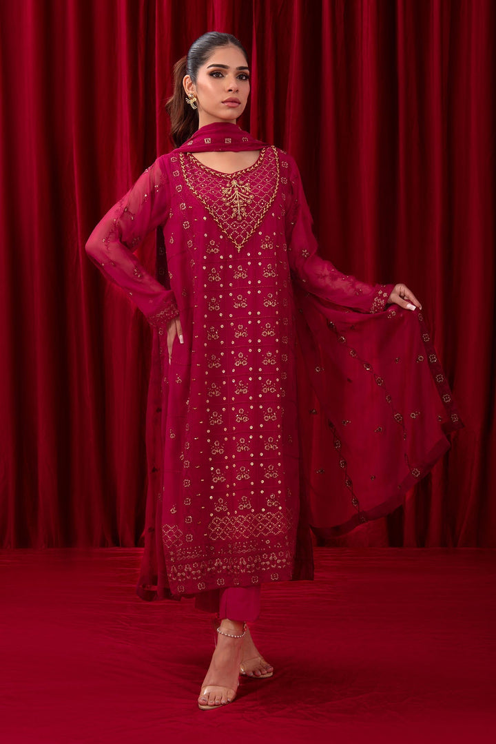Ochre Clothing Stitched 3 Piece Luxury Emb Chiffon Collection'2025-SOF-01
