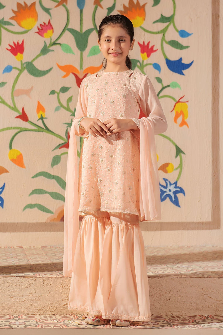 Ochre Clothing Girls Full Suits Chiffon Embroidered 3 Pc Suit