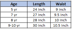 - Size chart in images