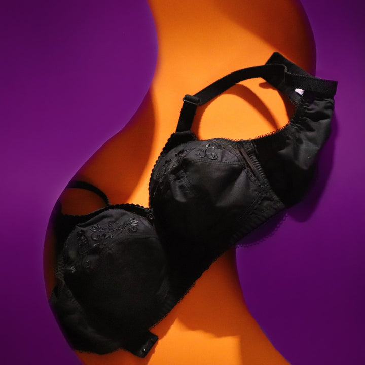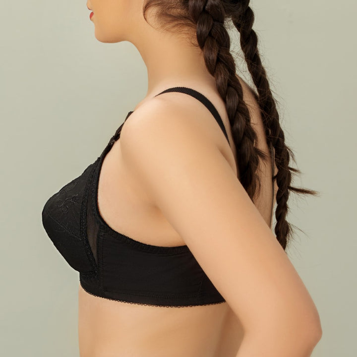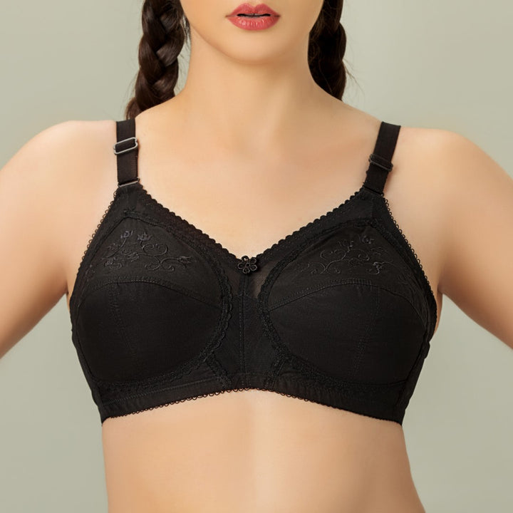 DORIA Cotton, Cotton Embroidered Unpadded Control Bra, BLACK