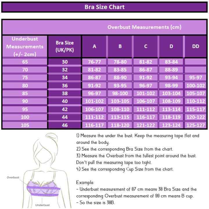 34 B, 34 C, 34 D, 36 B, 36 C, 36 D, 36 DD, 38 B, 38 C, 38 D, 38 DD, 40 B, 40 C, 40 D, 40 DD, 42 B, 42 C, 42 D, 42 DD, 44 B, 44 C, 44 D, 46 B, 46 C |