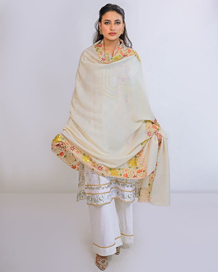 Ayla Studio Embroidered Pashmina Shawl-Luana
