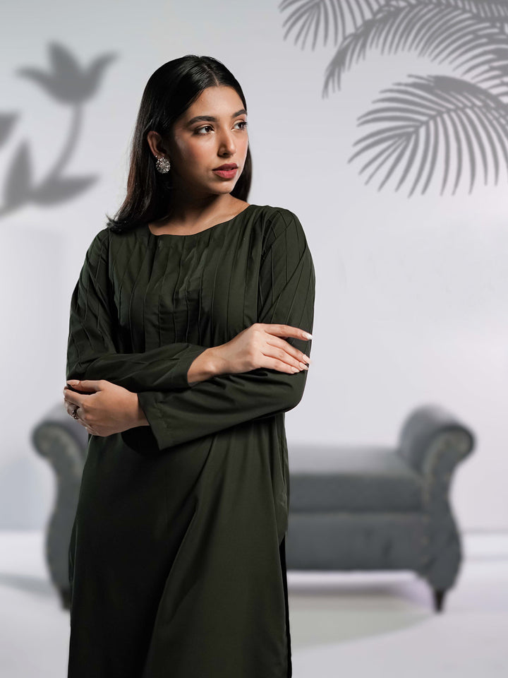 Elevate your style with our Envy, where sophistication meets simplicity. Crafted from premium Viscos, this elegant two-piece ensemble features a Round-neck and the design is further enhanced with plates on the front upper body and upper sleeves, adding a touch of refined texture and sophistication.