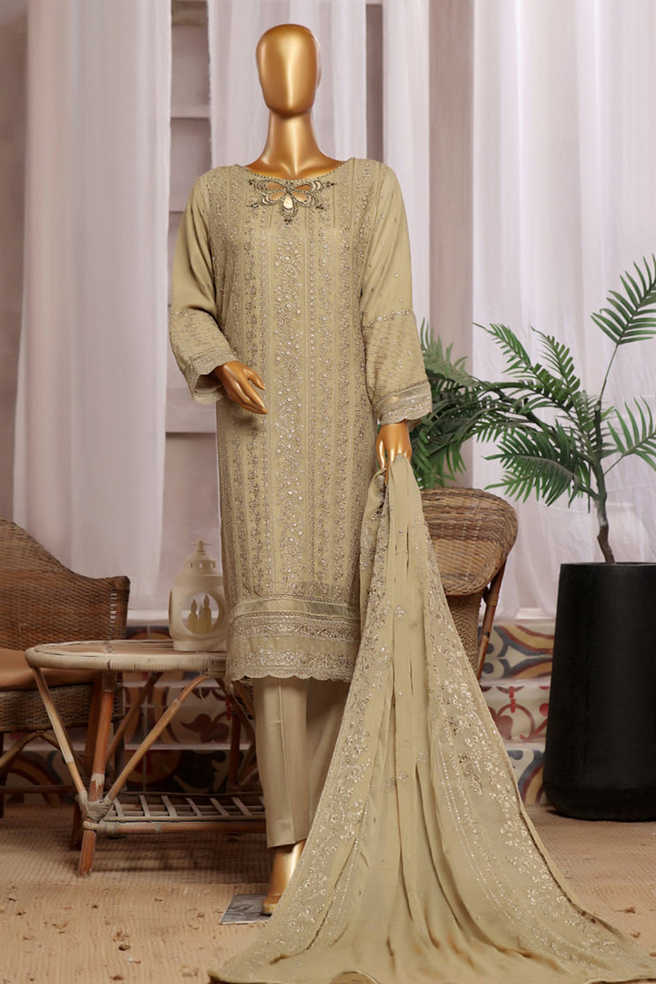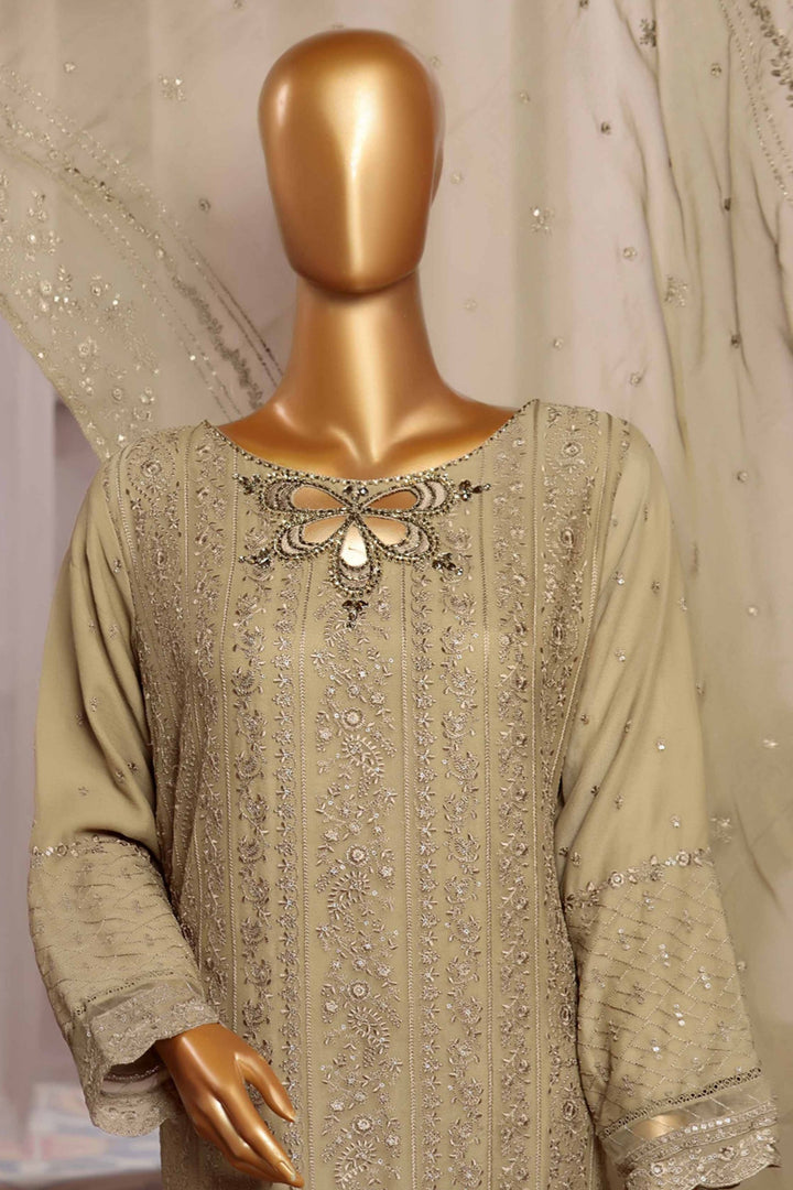 Fasaane By HZ Stitched 3 Piece Formals Chiffon Vol-06 Collection'2024-HZK-184-Beige