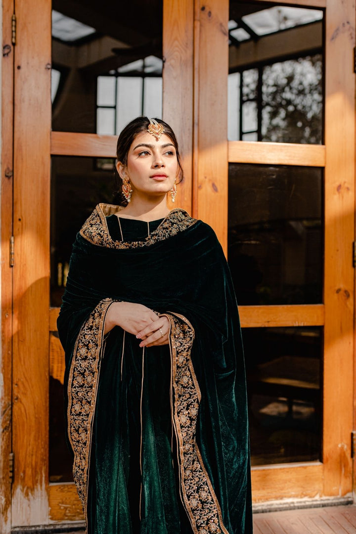 Velvet By Mannat Clothing Stitched Collection-Green Embroidered Shawl