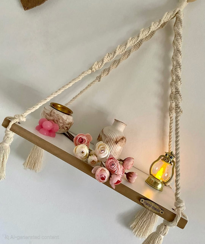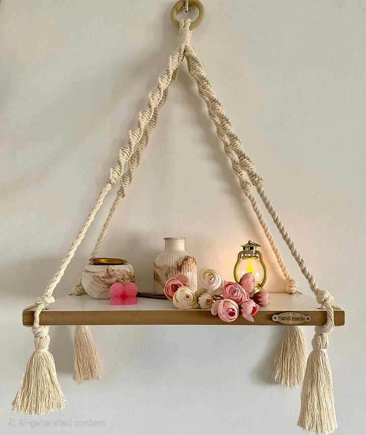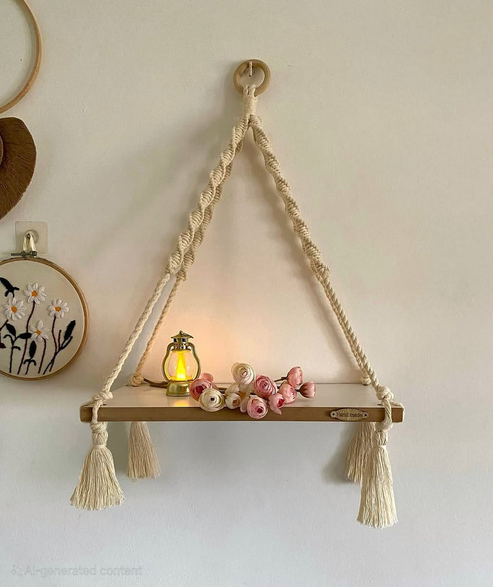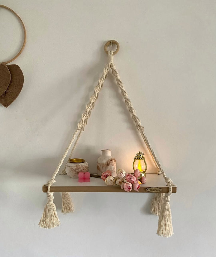 Handmade Macrame Wooden Shelf – Boho Wall Hanging Shelf