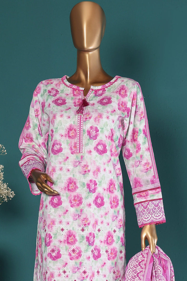 - Digital Printed Embroidered Chikankari Khaddar Shirt.
