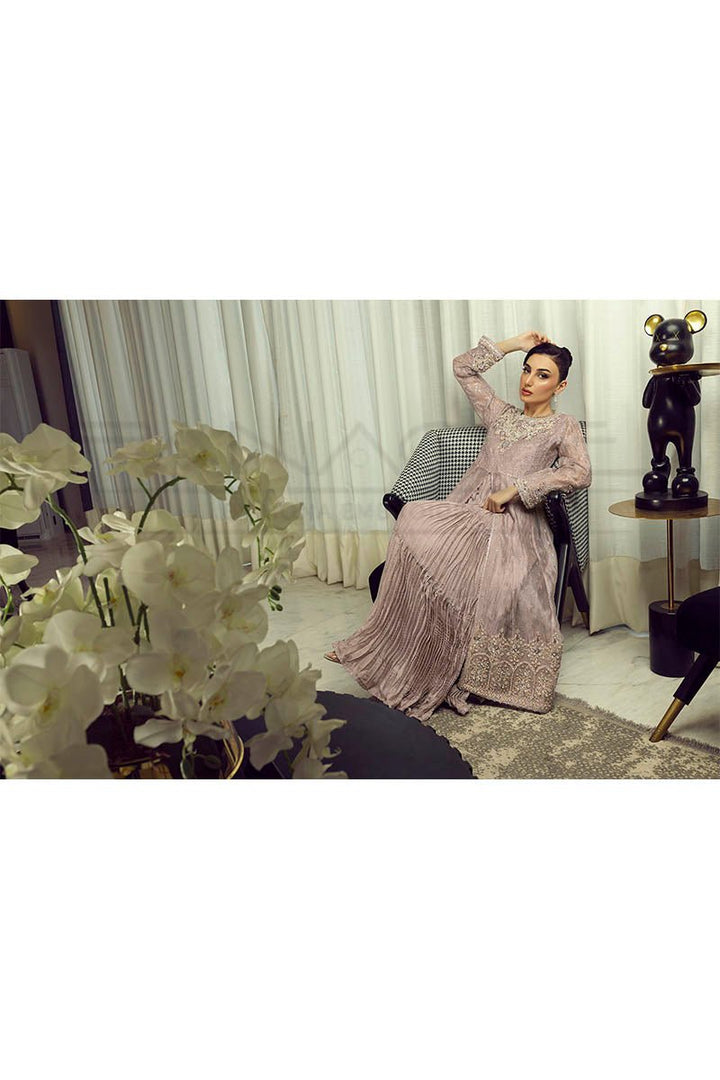 This exquisite lilac slit-open frock style shirt is a perfect blend of tradition and modern fusion. The outfit features luxurious khaddi net fabric, enriched with intricate lilac anchor thread work, shimmering sequins, delicate paisley pattern embroidery, pearl embellishments and lace on the daman adding a romantic touch. Motifs gracefully enhance the design, adding depth and sophistication. The crinkle-style inner complement the ensemble, creating a flowing, sleek silhouette. Tailored for formal events and red-carpet occasions, this suit captures timeless beauty with a trendy appeal, highlighting your unique charm.